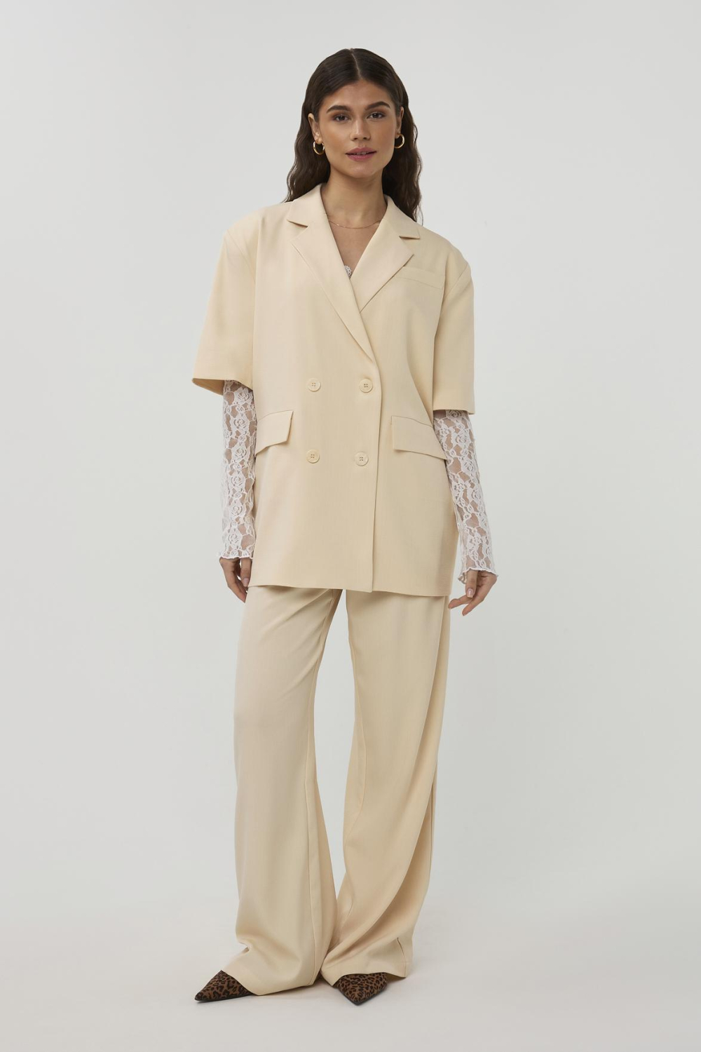 Deze beige broek van Studio Amaya laat je stijlvol de zomer ingaan. De wide leg pasvorm zorgt voor een luchtig en comfortabel gevoel, terwijl de high waist een flatterende silhouet biedt. Gemaakt voor casual gelegenheden, kun je deze broek gemakkelijk combineren met zowel elegante blouses als een eenvoudig T-shirt. De subtiele streep voegt een verfijnde touch toe, zonder overbodige drukte. Dankzij de steekzakken zijn ze niet alleen stijlvol maar ook praktisch. De normale lengte maakt deze broek veelzijdig voor diverse lichaamslengtes, en met de knoop/ritssluiting blijft de look strak en netjes. De soepele stof zorgt voor bewegingsvrijheid, ideaal voor een dag op kantoor of een ontspannen middag in de stad. Stap met vertrouwen in deze zomerse broek en ervaar de perfecte balans tussen stijl en comfort. Of het nu voor een lunchdate is of een casual werkdag, deze broek past bij elke situatie.