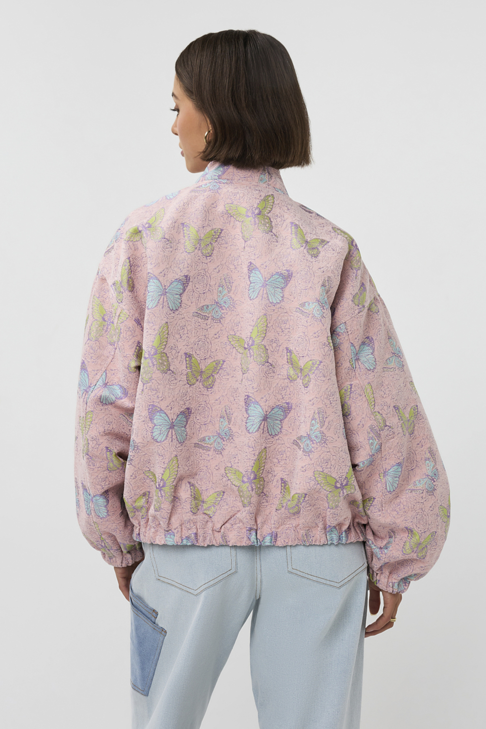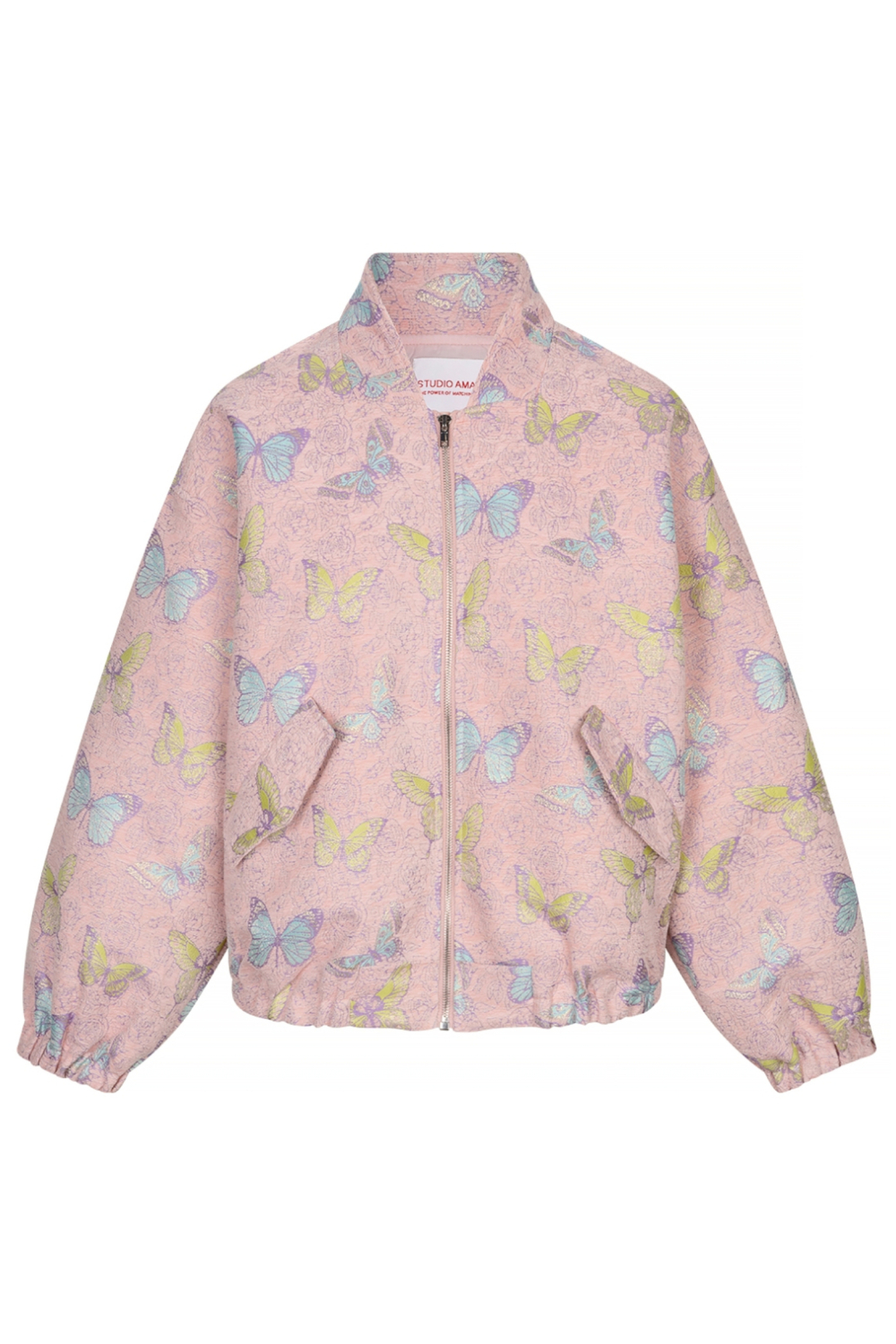 Deze unieke jas van Studio Amaya voegt een speelse touch toe aan je garderobe. Met een zachte roze basiskleur, verfraaid met vrolijke vlinders, is deze jas de perfecte combinatie van stijl en comfort. De oversized pasvorm zorgt voor een nonchalante urban uitstraling, terwijl de stevige rits en klepzakken praktisch zijn voor dagelijks gebruik. De high neck hals houdt je behaaglijk tijdens de koelere lentedagen. Gemaakt van 100% polyester, combineert deze jas moeiteloos lichtheid met duurzaamheid. Of je nu een dagje in de stad doorbrengt of op pad gaat met vrienden, deze jas biedt veelzijdigheid zonder concessies te doen aan stijl. Het glanzende glitterpatroon voegt een subtiele sprankeling toe, waardoor je opvalt zonder te overdrijven. De lange mouwen en normale lengte maken dit een veelzijdige keuze voor verschillende gelegenheden. Combineer met je favoriete jeans of een casual jurkje voor een complete look. De jas is een uitstekende keuze voor iedereen die houdt van een combinatie van comfort en fashion.