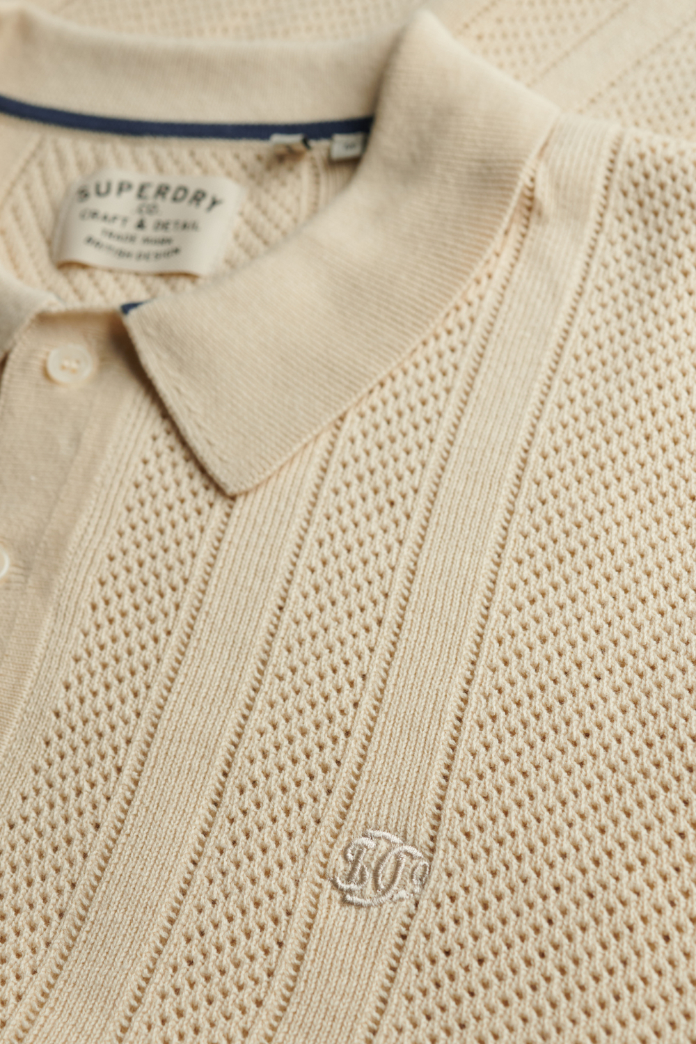Deze Superdry polo voor heren, uitgevoerd in de kleur 1LG OATMEAL BEIGE, is een stijlvolle toevoeging aan jouw garderobe. De knitwear-stijl met structuurpatroon geeft het een verfijnde uitstraling die zowel casual als chic te dragen is. Dankzij de regular fit pasvorm en het gebruik van 100% katoen, biedt deze polo een aangename bewegingsvrijheid en comfort. De rib kraag en knoopsluiting maken het een veelzijdig kledingstuk dat geschikt is voor diverse situaties, van een ontspannen weekend tot een informele bijeenkomst op het werk. De lange mouwen en de normale lengte maken het een perfect item voor de lentedagen. De subtiele details, zoals de gestreepte mouwboorden, geven de polo een unieke twist en zorgen voor een extra stijlstatement. Combineer de polo met een nette chino voor een smart-casual look, of draag hem met je favoriete jeans voor een meer ontspannen outfit. Deze Superdry polo biedt de perfecte balans tussen comfort en stijl, waardoor je zowel in je vrije tijd als bij allerlei gelegenheden goed voor de dag komt.