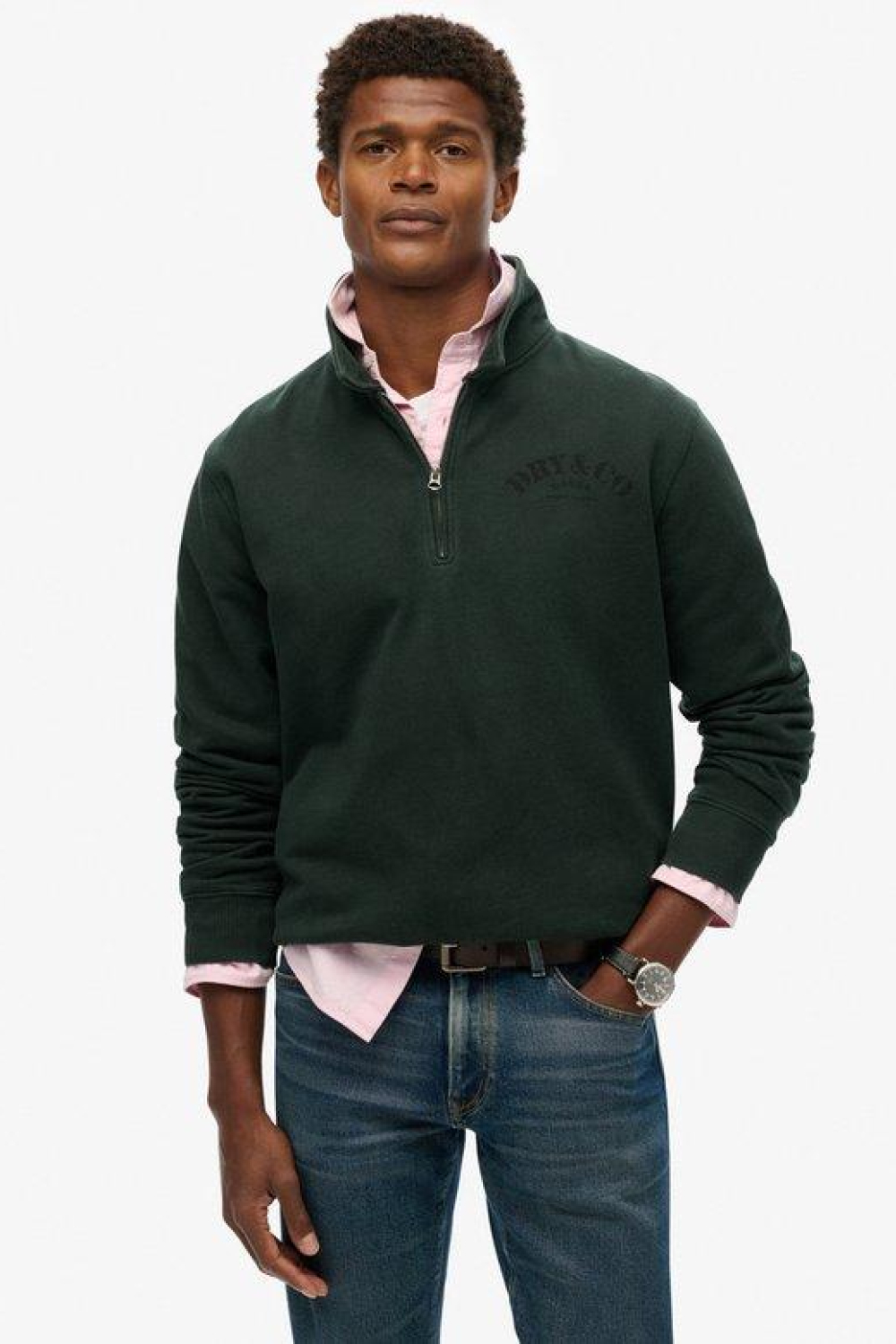Deze casual sweater van Superdry, in de kleur Forest Green, is een veelzijdige aanwinst voor je wintergarderobe. De sweater heeft een comfortabele regular fit en is gemaakt van 100% katoen, waardoor deze heerlijk zacht aanvoelt. De puntkraag en ritssluiting geven het een moderne uitstraling, terwijl de subtiele logo-opdruk op de borst een trendy touch toevoegt. Deze sweater is perfect om te dragen tijdens een ontspannen weekend of een informele bijeenkomst met vrienden.