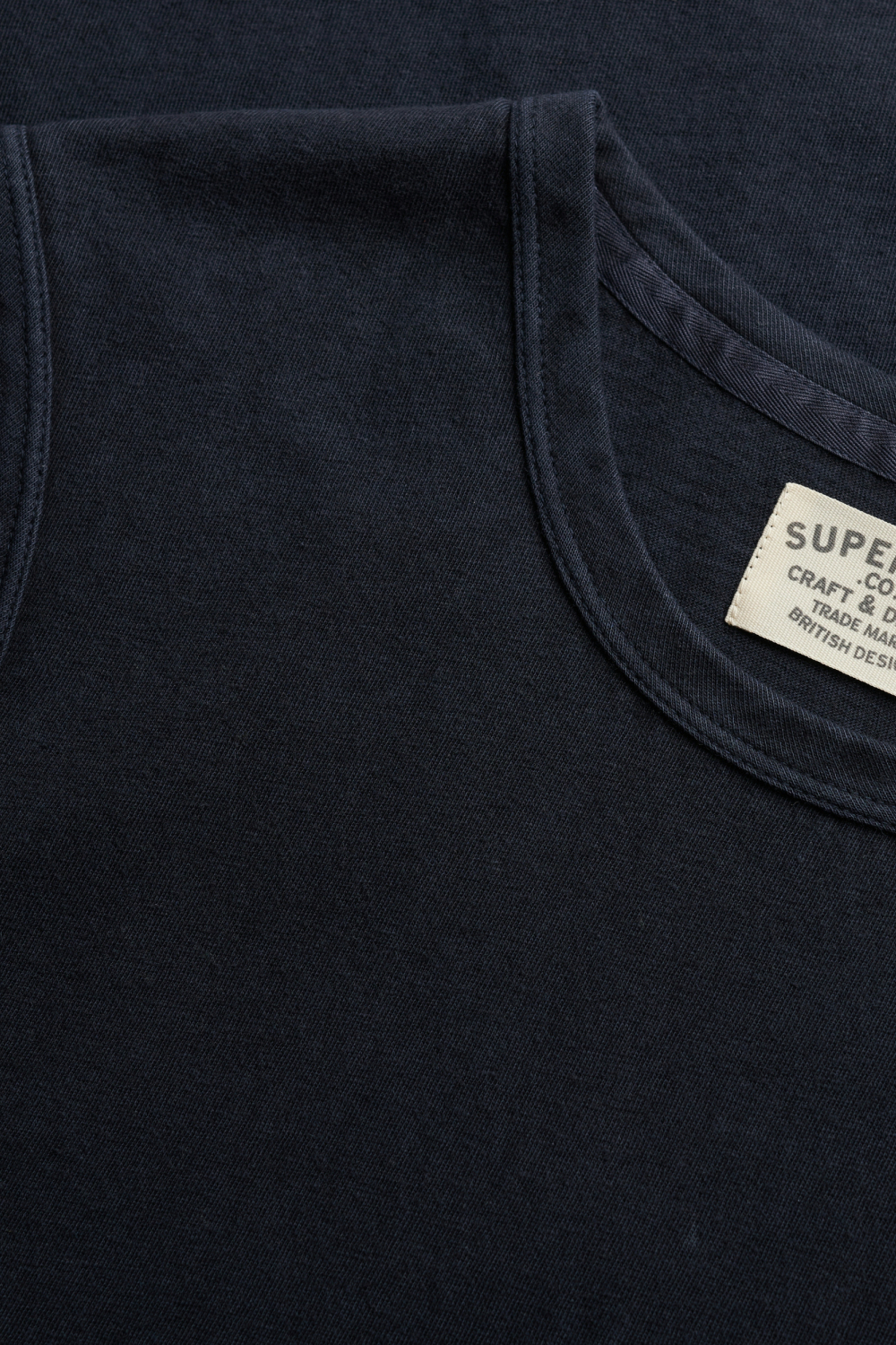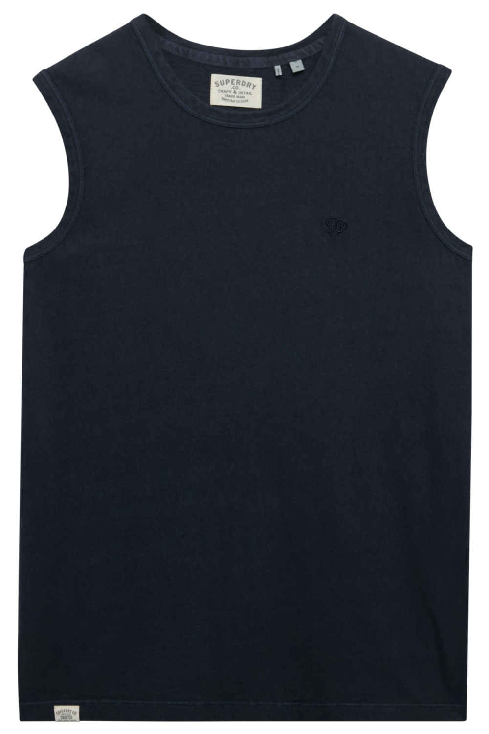 Dit Superdry heren T-shirt in de kleur 98T Eclipse Navy is een ideale keuze voor een casual look tijdens het lente seizoen. Met een regular fit en mouwloos ontwerp biedt dit T-shirt je optimale bewegingsvrijheid en comfort, perfect voor zowel sportieve als ontspannen activiteiten. De subtiele ronde halslijn geeft het geheel een tijdloze uitstraling, terwijl de donkerblauwe tint gemakkelijk te combineren is met andere kledingstukken in je garderobe. De hoogwaardige afwerking en het discrete, geborduurde logo op de borst maken dit T-shirt geschikt voor diverse gelegenheden, van een zomerse dag in het park tot een ontspannen avond met vrienden. De stoere uitstraling en het duurzame materiaal zorgen ervoor dat je lange tijd van dit kledingstuk kunt genieten. Combineer het met een jeans of een short voor een veelzijdige, casual stijl die altijd goed zit.