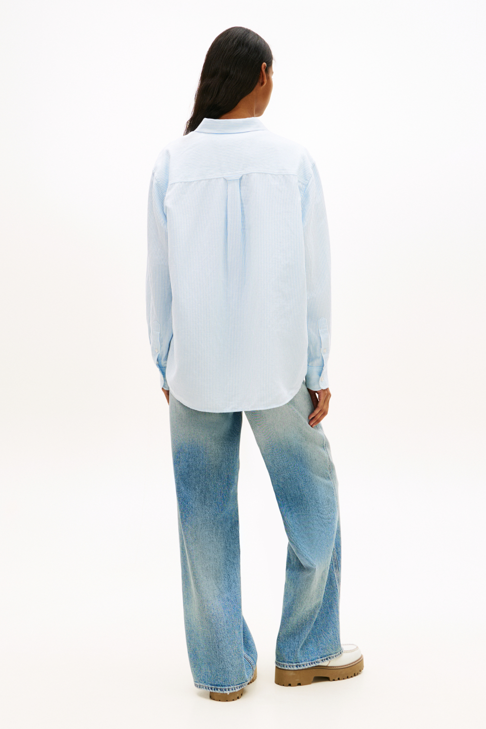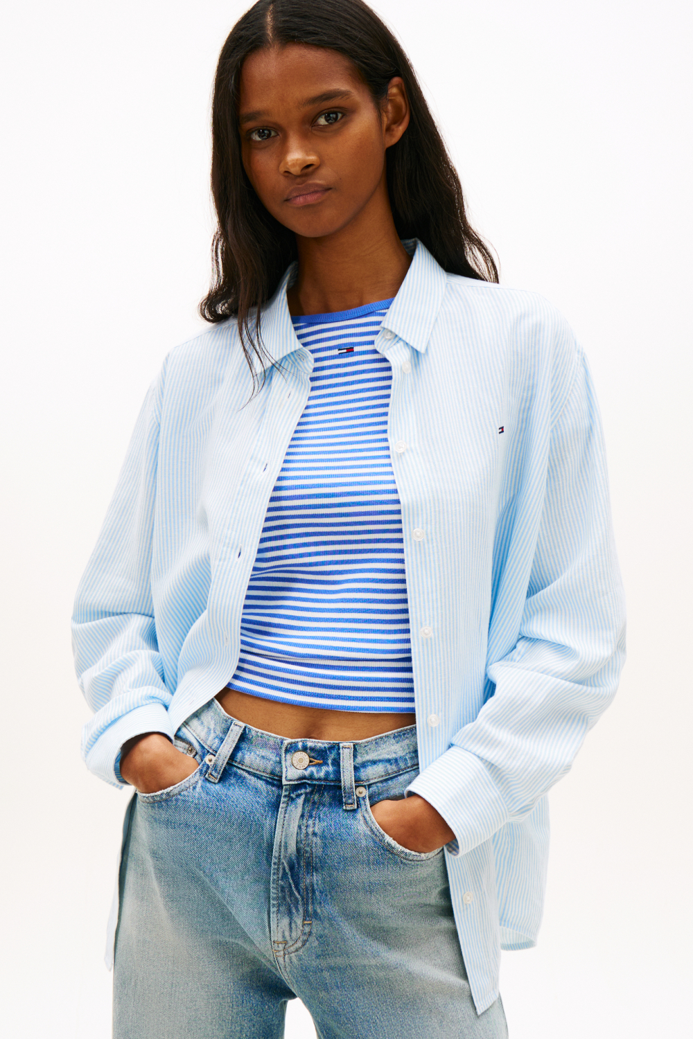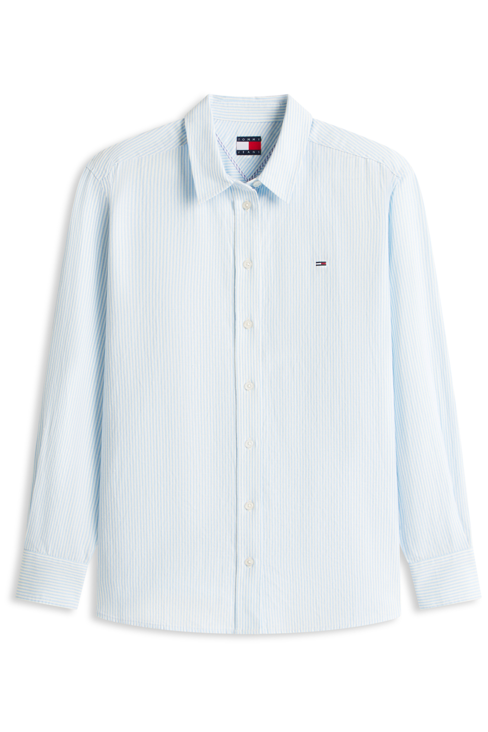 Deze gestreepte blouse van Tommy Jeans, speciaal ontworpen voor dames, combineert moeiteloos stijl en comfort. Met een ontspannen pasvorm en een klassieke puntkraag is het de ideale keuze voor een casual outfit in het voorjaar. De subtiele blauwe strepen bieden een tijdloze uitstraling, terwijl de knoopsluiting zorgt voor een klassieke afwerking. Deze blouse met lange mouwen en normale lengte is perfect voor een dagje uit of een informele werkbijeenkomst. De blouse is veelzijdig en kan makkelijk worden gestyled voor verschillende gelegenheden. Draag het losjes over een gestreept T-shirt en combineer met je favoriete jeans voor een moeiteloze, modieuze look. Of je nu een wandeling maakt door het park of een lunchafspraak hebt, deze Tommy Jeans blouse biedt een stijlvolle en comfortabele keuze die je makkelijk kunt aanpassen aan jouw activiteit.