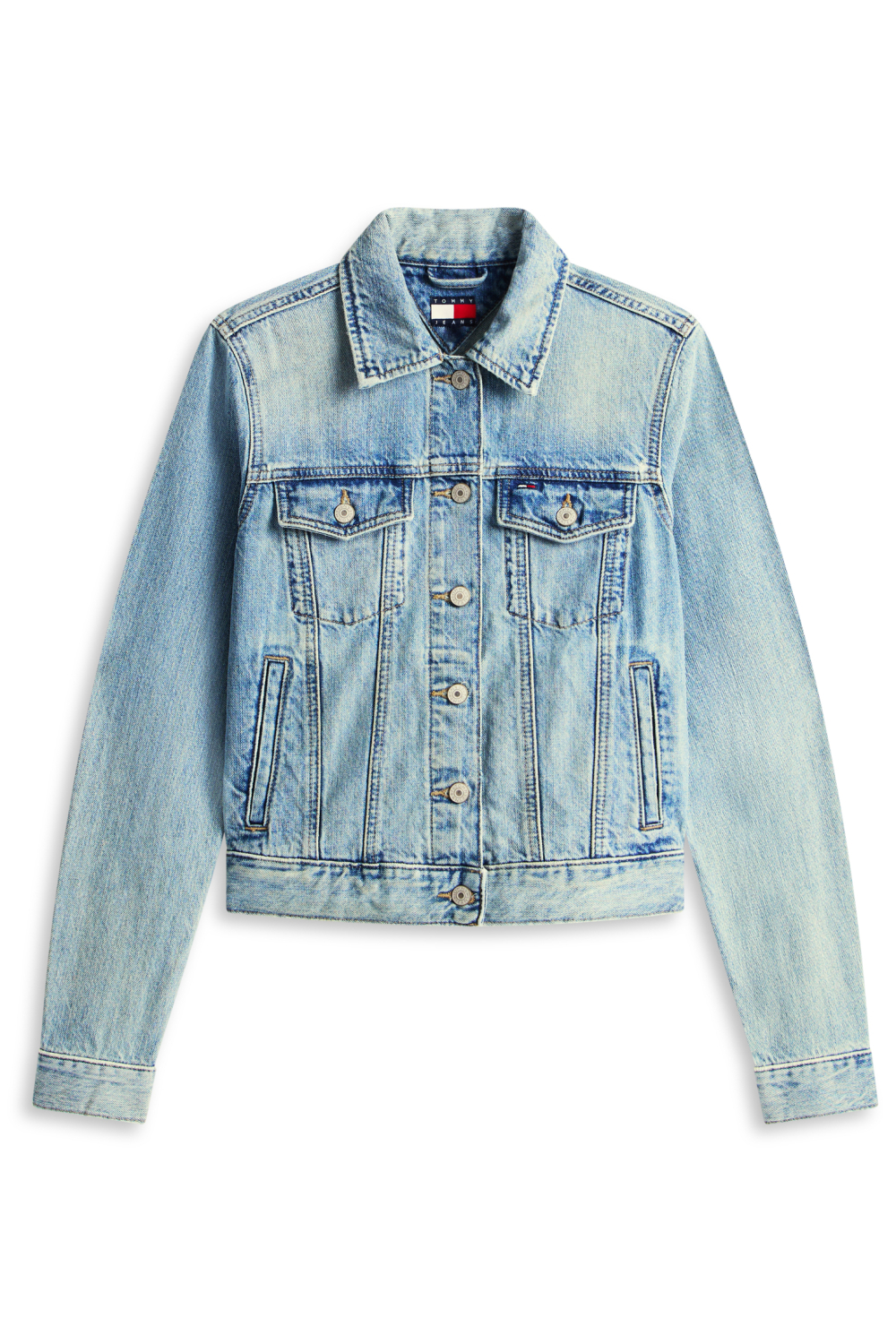 Deze Tommy Jeans damesjas in een lichte denimtint is de perfecte aanvulling op je lentegarderobe. Het 100% katoenen materiaal zorgt voor een comfortabele en ademende draagervaring. Met een regular fit pasvorm en een klassieke puntkraag biedt deze jas een tijdloze uitstraling die moeiteloos kan worden gecombineerd met verschillende stijlen. De opvallende bleached wash en knoopsluiting geven het jasje een casual maar toch verfijnde look, terwijl de lange mouwen en de korte lengte het ideaal maken voor de wisselende temperaturen van het seizoen. Of je nu een stadswandeling maakt of een informeel samenzijn hebt met vrienden, deze denim jas van Tommy Jeans past perfect bij elke gelegenheid. De praktische steekzakken voegen zowel stijl als functionaliteit toe, perfect om je essentiële items mee te nemen. Combineer deze jas met een jeans voor een klassieke denim-op-denim look, of draag hem over een lichte jurk voor een speelse, moderne touch. Deze must-have van Tommy Jeans is ontworpen om je een moeiteloze en stijlvolle uitstraling te geven in elke situatie. Meer informatie: De totale lengte is 54 cm bij maat S.