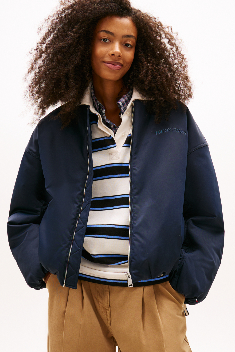 Deze donkere navy jas van Tommy Jeans is een stijlvolle keuze voor de winter. De jas heeft een regular fit en is gemaakt met een gewatteerde polyester voering, wat zorgt voor warmte en comfort tijdens koudere dagen. De rib kraag geeft een sportieve uitstraling, terwijl de rits aan de voorkant de jas makkelijk afsluit. De subtiele tekst van Tommy Jeans op de borst voegt een extra merkdetail toe aan het design. Steekzakken aan de zijkanten bieden voldoende ruimte om je handen warm te houden of kleine essentials op te bergen.Met zijn casual stijl en korte lengte is deze jas een ideale match voor een informele setting, of je nu gaat wandelen in het park of boodschappen doet in de stad. Combineer deze jas bijvoorbeeld met een losse broek en sneakers voor een comfortabele en trendy look. Lange mouwen maken het geschikt voor de frisere seizoenen. De C1G DARK NIGHT NAVY kleur zorgt ervoor dat dit kledingstuk een tijdloze toevoeging aan je garderobe is, gemakkelijk te combineren met diverse outfits. Meer informatie: De totale lengte is 56 cm bij maat S.