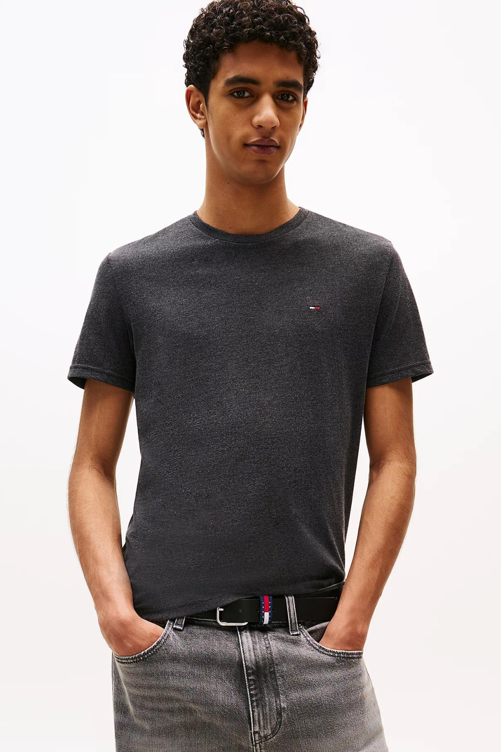 Dit gemêleerde T-shirt van Tommy Jeans biedt een stijlvolle toevoeging aan je kledingcollectie. Het is vervaardigd uit een comfortabele mix van 60% katoen en 40% gerecycled polyester, waardoor het niet alleen zacht aanvoelt maar ook een duurzame keuze is. De slim fit pasvorm zorgt voor een moderne, aansluitende look, terwijl de ronde hals en korte mouwen het geheel een casual uitstraling geven. Het subtiele logo op de borst voegt een verfijnd detail toe, wat het perfect maakt voor alledaags gebruik. Dankzij het tijdloze ontwerp en de veelzijdige kleur kun je dit T-shirt eenvoudig combineren met verschillende outfits. Of je nu kiest voor een relaxte jeans op een zonnige lentedag of een nettere pantalon voor een informeel avondje uit, je zit altijd goed. De normale lengte en de ademende stof maken het geschikt voor diverse gelegenheden, van een weekendbrunch tot een ontspannen dag op kantoor. Met dit T-shirt voeg je moeiteloos een vleugje stijl en comfort toe aan je dagelijkse look.