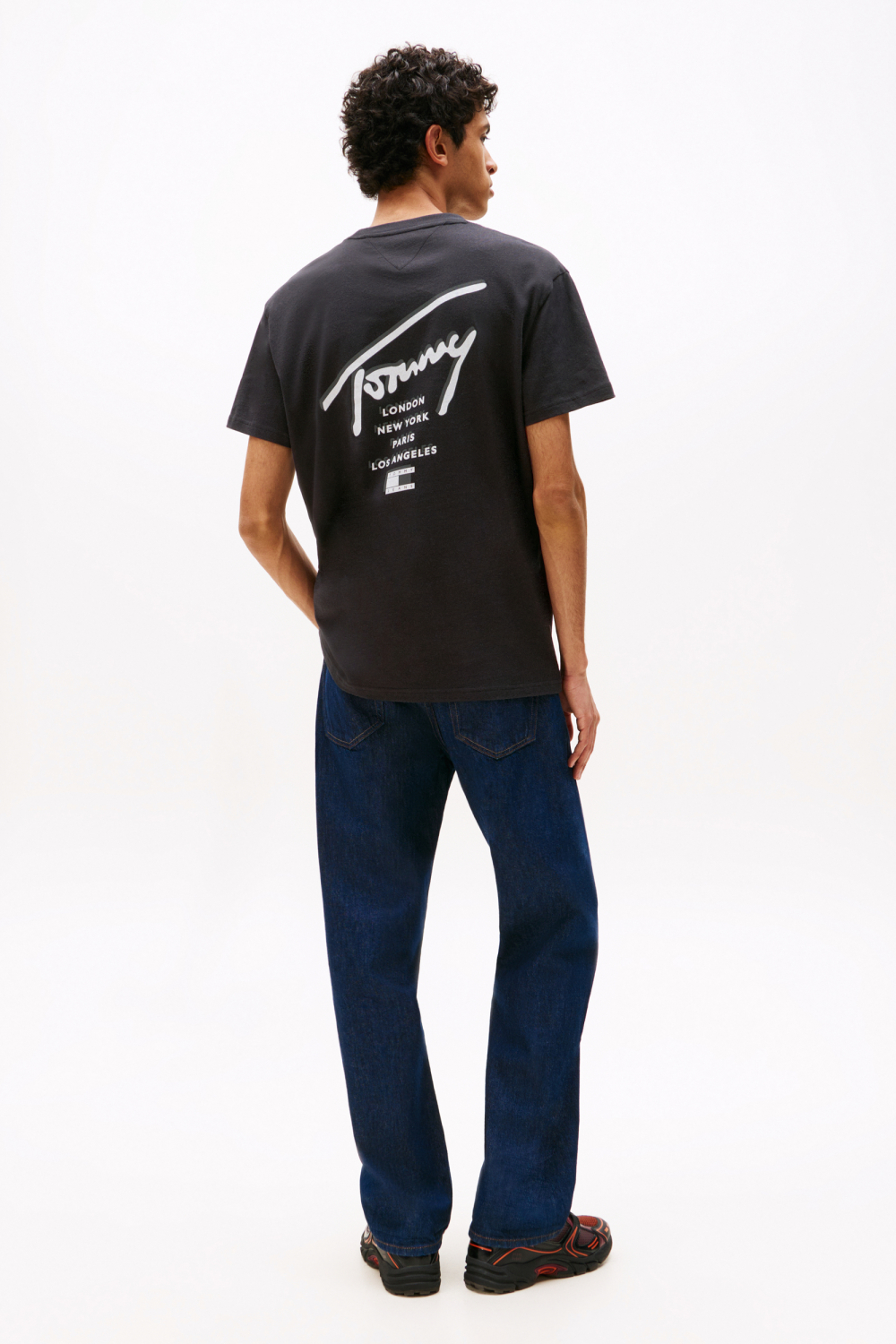 Dit casual zwarte T-shirt van Tommy Jeans is een onmisbare aanvulling voor jouw herfstgarderobe. Het T-shirt heeft een regular fit pasvorm en is vervaardigd uit 100% katoen, wat zorgt voor een comfortabele en duurzame stof. De ronde hals en de korte mouwen maken het een veelzijdig kledingstuk dat je moeiteloos kunt dragen op informele dagen. Op de achterkant van het T-shirt staat een opvallende tekstprint met namen van wereldsteden, die een stoer en urban tintje geeft aan het geheel. Of je nu een dagje uitgaat of een relaxte dag thuis doorbrengt, dit T-shirt biedt je de perfecte combinatie van stijl en comfort. Het is eenvoudig te combineren met een jeans voor een casual look of met een comfortabele broek voor een laid-back vibe. Dankzij de normale lengte en het eenvoudige ontwerp kun je dit T-shirt makkelijk in laagjes dragen onder een jas of vest in de koelere maanden. Laat je gevoel voor mode naar voren komen met dit stijlvolle item van Tommy Jeans.