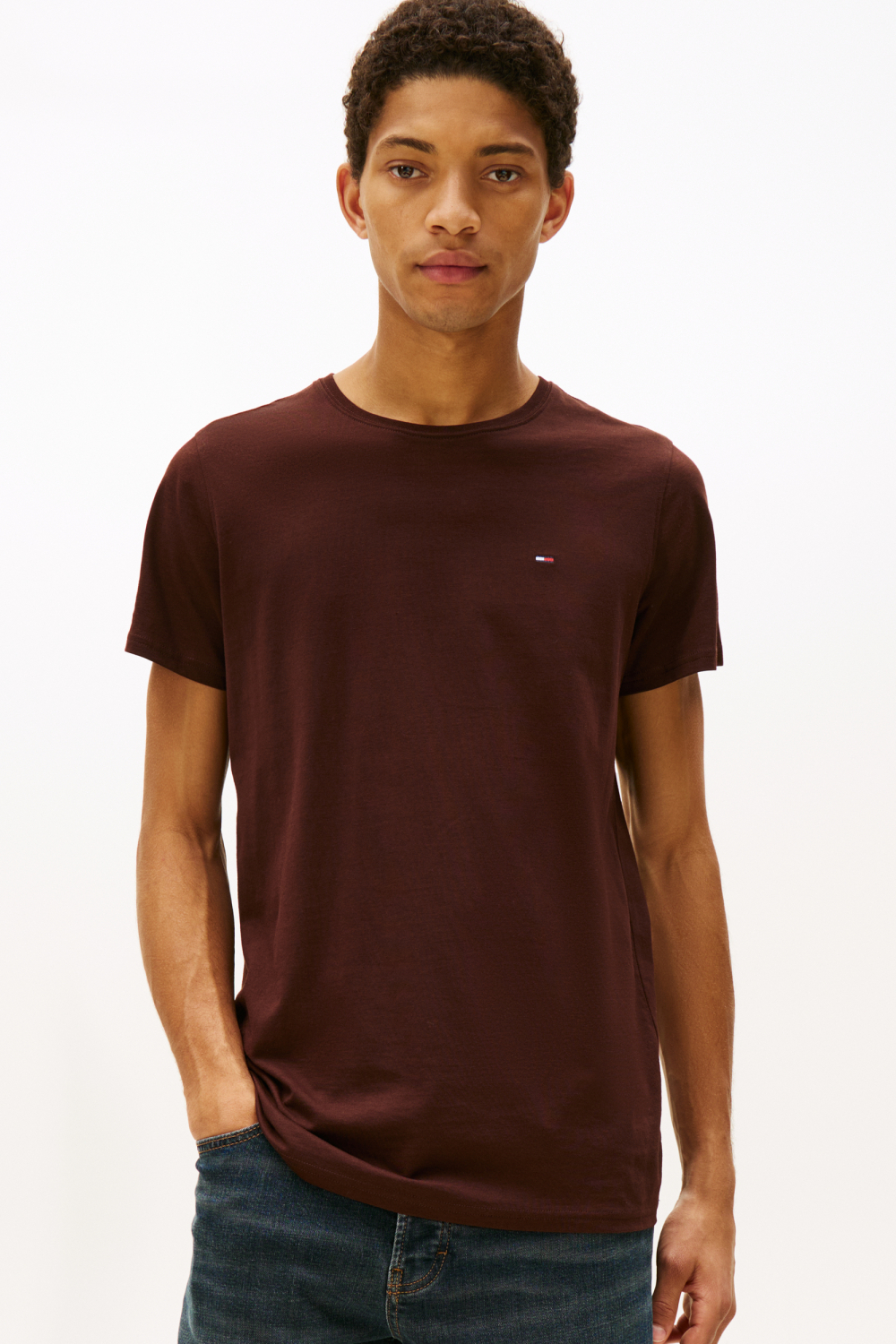 Dit Tommy Jeans T-shirt voor heren, ideaal voor de herfst, combineert stijl met comfort. Gemaakt van 100% katoen, biedt het een gemêleerd patroon dat visueel aantrekkelijk is. De slim fit pasvorm zorgt voor een moderne uitstraling, terwijl de ronde hals en korte mouwen casual gemak bieden. Dit T-shirt in een diepe, rijke kleur is een uitstekende keuze voor zowel dagelijkse uitstapjes als relaxte bijeenkomsten met vrienden. De normale lengte maakt het eenvoudig te matchen met zowel jeans als een chino, perfect voor een veelzijdige herfstdag. Het subtiele logo op de borst geeft dit T-shirt een verfijnde touch die kenmerkend is voor Tommy Jeans. Of je nu een informele lunch hebt of een stadswandeling maakt, met dit T-shirt ben je verzekerd van een tijdloze look die altijd goed zit. Maak het onderdeel van je duurzame garderobe voor een stijl die nooit faalt.