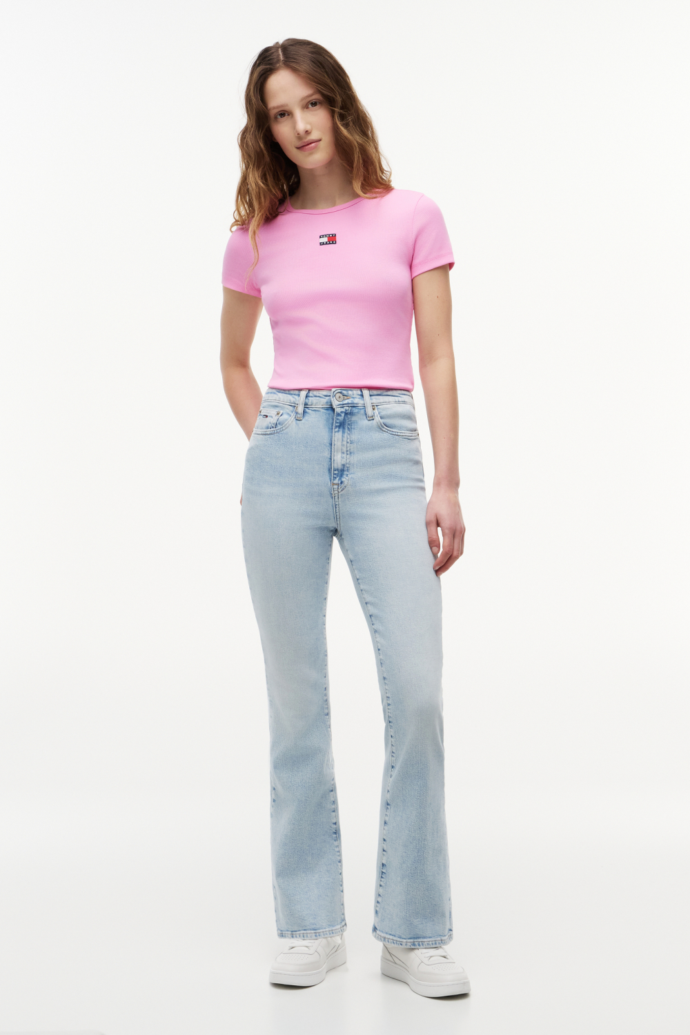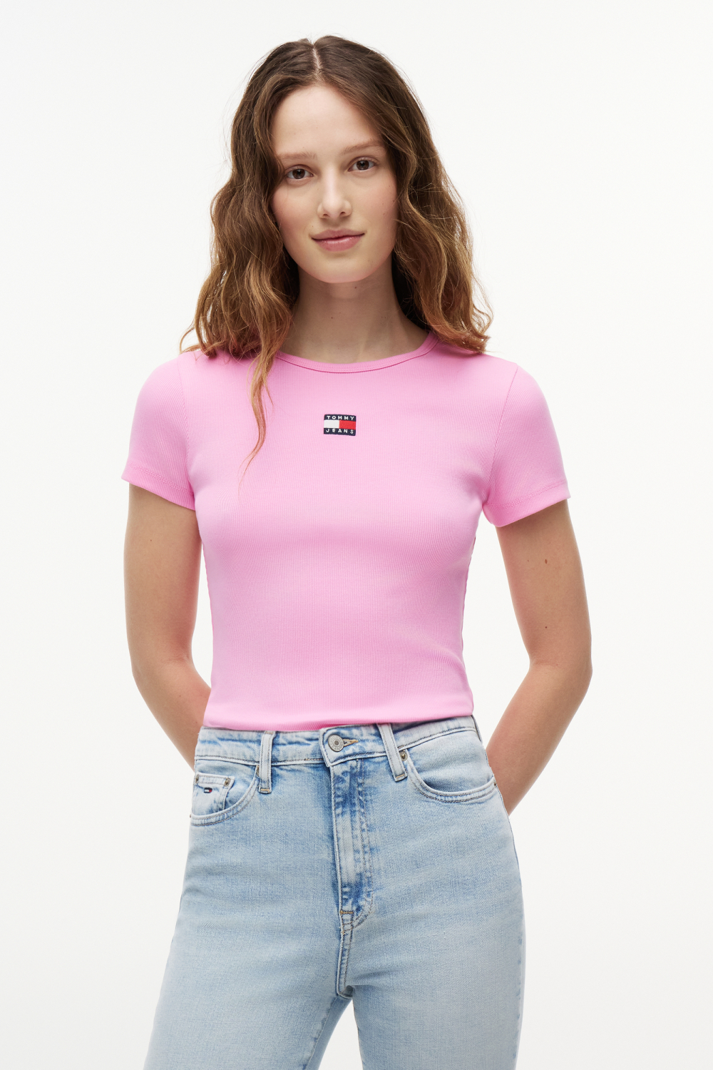 Dit roze dames T-shirt van Tommy Jeans is een must-have voor jouw zomergarderobe. Gemaakt van 95% katoen en 5% elastan, biedt dit shirt een perfecte mix van comfort en stretch. Met zijn regular fit zit het T-shirt altijd goed, terwijl de ribstructuur voor een speels detail zorgt. De ronde hals en korte mouwen maken het een tijdloze keuze voor warme dagen, ideaal voor zowel casual als iets nettere gelegenheden. Dankzij het opvallende roze kleur en het subtiele logo op de borst, voeg je met deze top van Tommy Jeans moeiteloos een stijlvolle touch toe aan je alledaagse look. Combineer het met een lichte jeans voor een frisse en moderne uitstraling, perfect voor een zomerse dag in het park of een gezellige lunch met vrienden. Dit T-shirt combineert moeiteloos comfort en stijl, zodat je altijd zelfverzekerd voor de dag komt.