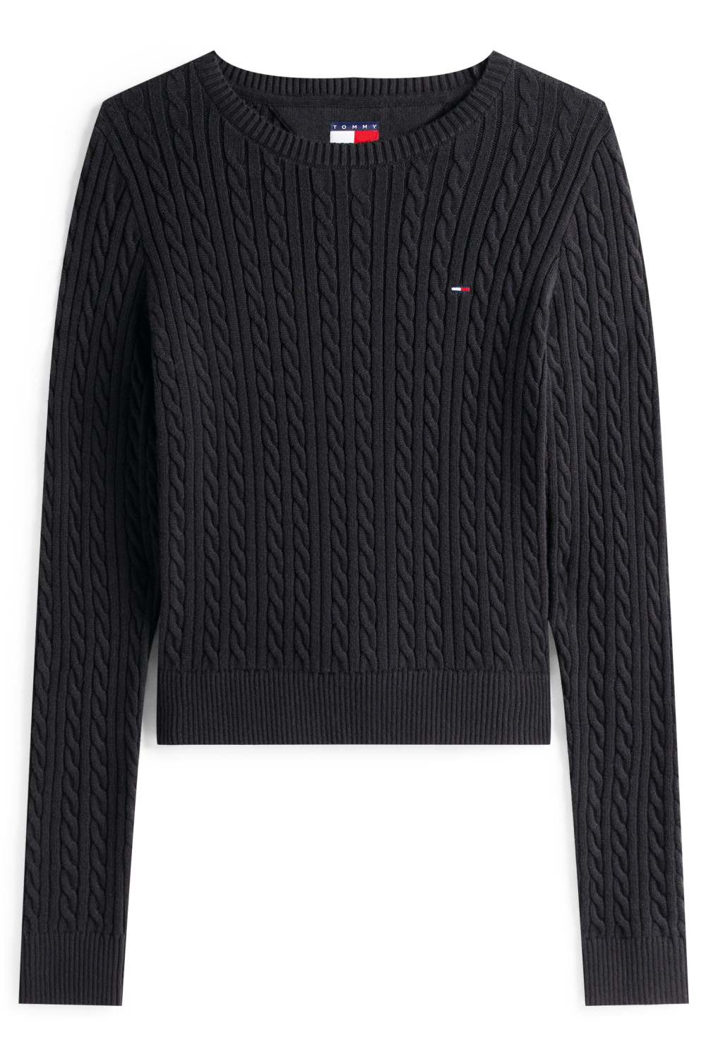 Deze kabelgebreide trui van Tommy Jeans is een onmisbare toevoeging aan je wintergarderobe. Met zijn regular fit en de diepe zwarte kleur is deze trui zowel stijlvol als comfortabel. Het ontwerp is voorzien van een subtiel merklogo op de borst, wat een extra touch aan je outfit geeft. Gemaakt van 100% katoen, voelt de trui heerlijk zacht aan op de huid en biedt hij een ademend comfort dat perfect is voor de koude maanden. De rond afgewerkte hals en de lange mouwen maken dit item veelzijdig en makkelijk te combineren. Draag het met een spijkerrok voor een casual look of kies voor een chique pantalon naar een zakelijke bijeenkomst. Het tijdloze ontwerp zorgt ervoor dat je deze trui jaar na jaar met veel plezier draagt. Dankzij het duurzame karakter van de stof is deze Tommy Jeans trui een bewuste keuze die lang meegaat in je kledingkast.