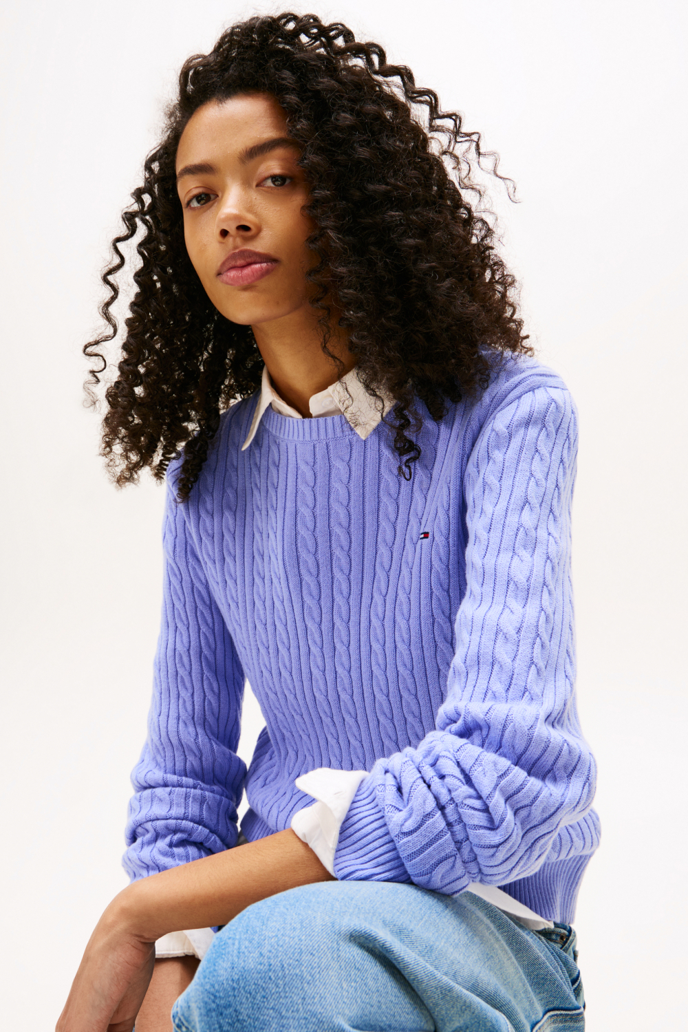 Deze Tommy Jeans trui is een waardevolle aanvulling op je wintergarderobe. Gemaakt van 100% katoen, biedt de trui een comfortabele en ademende ervaring. De regular fit en de ronde hals zorgen voor een casual look die je gemakkelijk kunt combineren met diverse outfits. Het kabelpatroon geeft de trui een klassieke uitstraling, terwijl de zachte, lila kleur een frisse, moderne touch toevoegt aan jouw look. Met zijn lange mouwen en normale lengte is deze trui ideaal voor koudere dagen. Hij is perfect voor een ontspannen vrije dag, maar ook stijlvol genoeg om te dragen tijdens een informele werkbijeenkomst. Combineer deze knitwear van Tommy Jeans met een denim jeans voor een tijdloze en casual stijl. Het subtiele logo op de borst geeft een verfijnde afwerking. Deze trui is een duurzame keuze die niet alleen warm houdt, maar ook goed is voor de planeet.