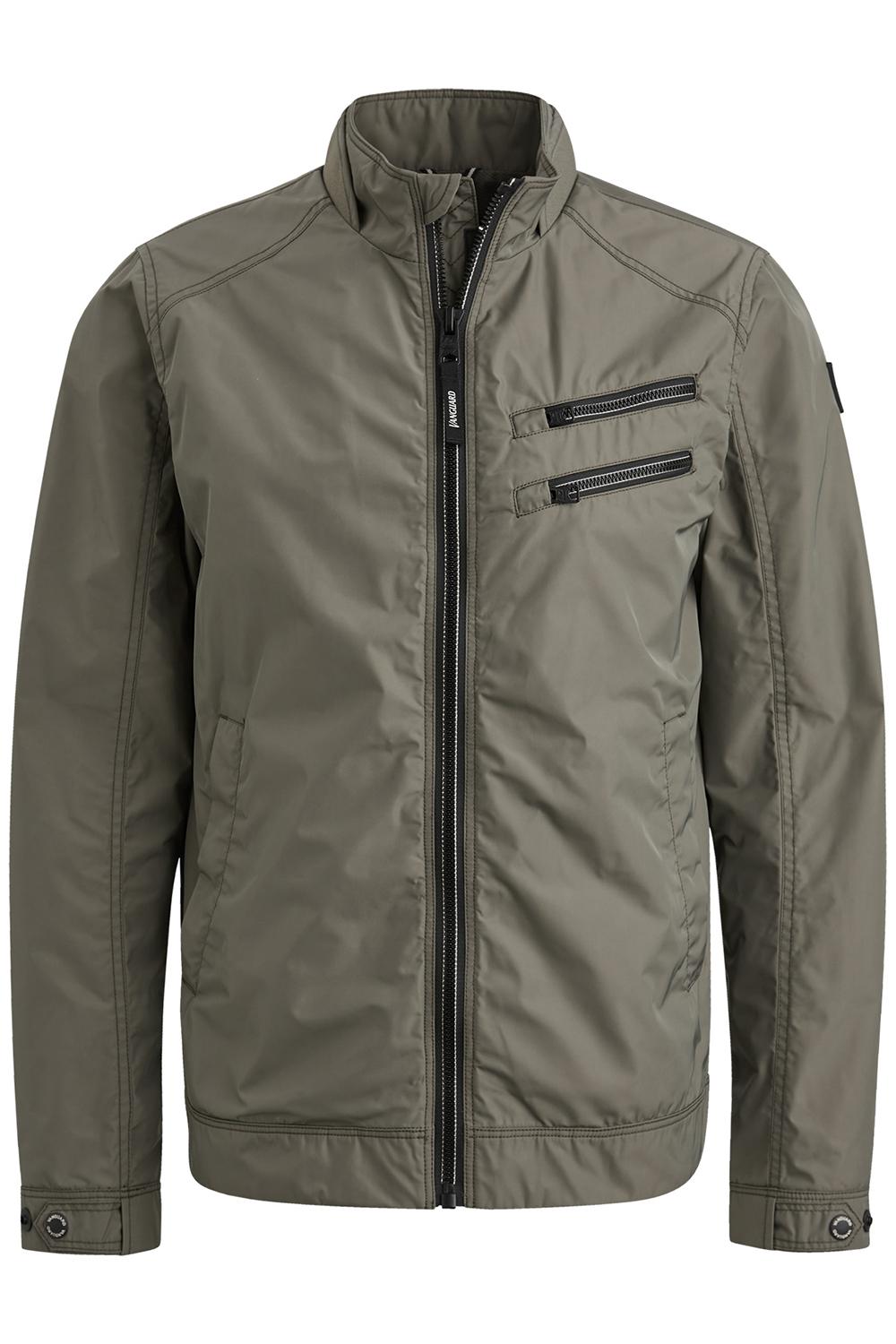 Jas van Vanguard met lange mouwen en een verstevigde highneckkraag. Dit model heeft steekzakken aan de voorkant met een drukknoopsluiting en twee ritszakken op borsthoogte. De jas sluit met een rits en de totale lengte is 70 cm bij maat M.