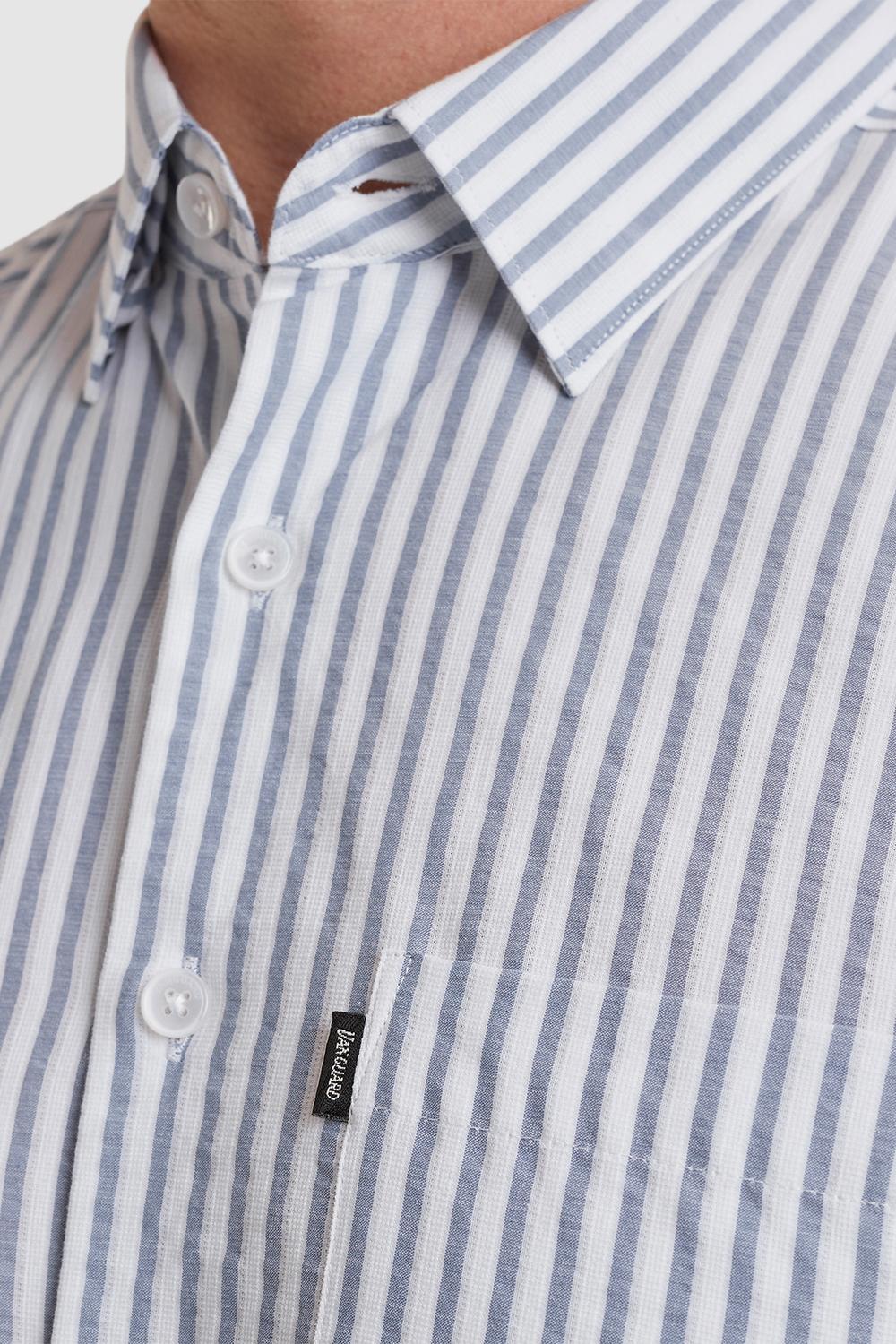 Dit streep patroon overhemd van Vanguard is een subtiele en stijlvolle toevoeging aan je lente garderobe. Met een klassieke puntkraag en knoopsluiting, draagt het ontwerp bij aan een moeiteloze casual look. Het regular fit model en de normale lengte zorgen ervoor dat het overhemd comfortabel zit zonder in te boeten op stijl. Het borstzakje voegt een praktische touch toe, terwijl de lange mouwen je warm houden op frissere dagen. Gemaakt van 100% katoen, biedt dit Vanguard overhemd een natuurlijke en duurzame keuze. De zachte stof zorgt voor ademend comfort, ideaal voor een dag op kantoor of een ontspannen weekend uitje. Het tijdloze streeppatroon maakt dit overhemd eenvoudig te combineren met zowel jeans als chino’s voor een veelzijdige uitstraling. Of je nu naar een informeel diner gaat of een dagje in de stad doorbrengt, dit overhemd is een betrouwbare optie voor elke gelegenheid.