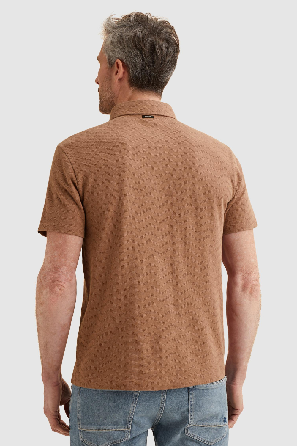 Deze casual herenpolo van Vanguard is een veelzijdige toevoeging aan je zomergarderobe. Gemaakt van 100% katoen, biedt het een comfortabele en ademende ervaring die ideaal is voor warmere dagen. De regular pasvorm zorgt voor een ontspannen uitstraling, terwijl de puntkraag en de knoopsluiting net dat beetje extra verfijning toevoegen. Het subtiele zigzagpatroon in een warme bruintint geeft de polo een uniek en stijlvol karakter. Met zijn tijdloze design pas je deze Vanguard polo eenvoudig aan verschillende looks aan. Draag hem met een lichte jeans voor een casual dagje uit, of combineer hem met een nette chino voor een iets formelere setting. De korte mouwen maken het een geschikte keuze voor zonnige dagen, terwijl de normale lengte zorgt voor een klassieke en nette uitstraling. Of je nu naar een informele bijeenkomst gaat of gewoon ontspannen de stad in wilt, deze polo biedt je een stijlvolle en veelzijdige optie.