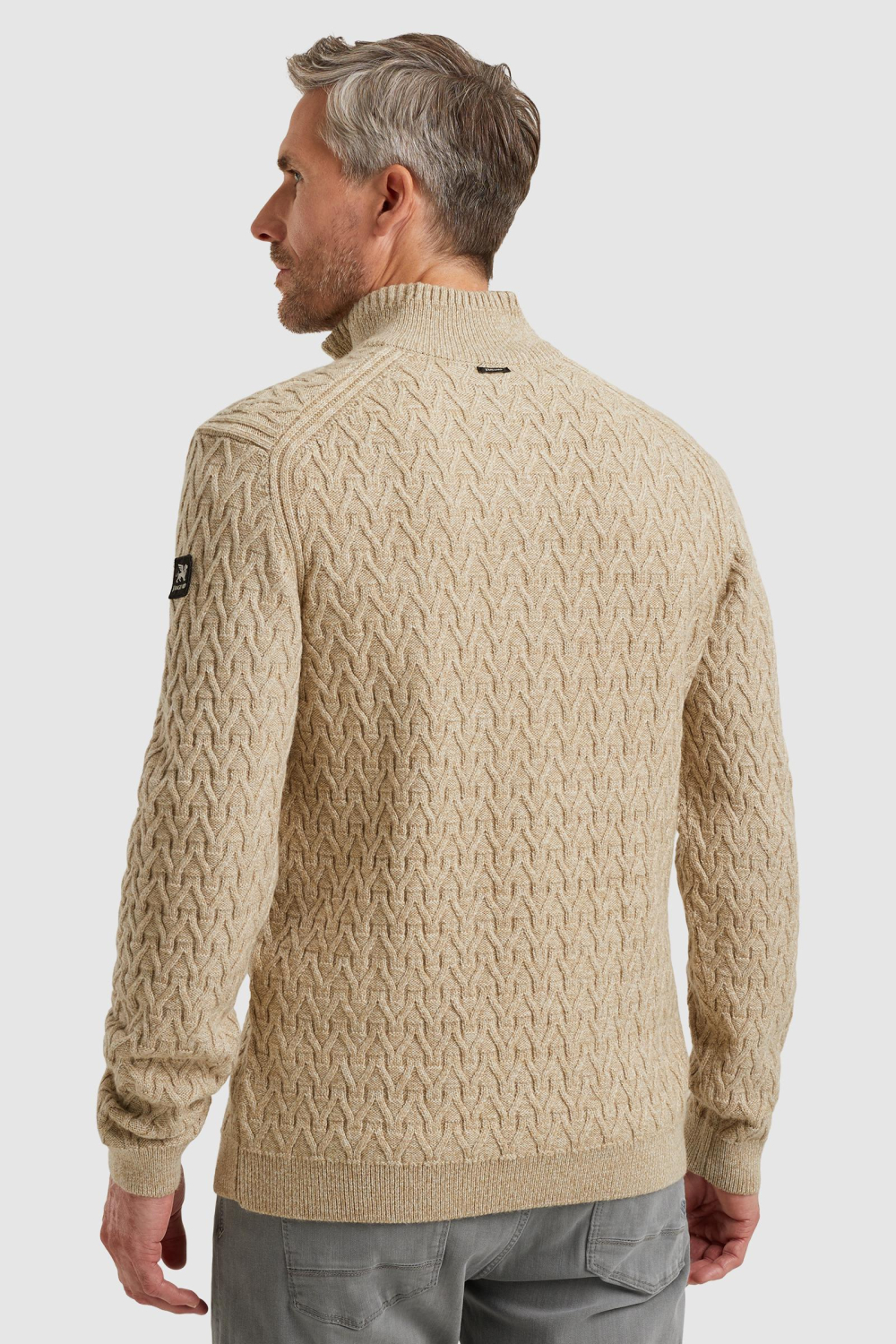Deze stijlvolle Vanguard trui, onderdeel van de knitwear collectie, biedt een subtiele mix van comfort en stijl. Uitgevoerd in een warme zandtint, vormt de gestructureerde kabelpatroon een visueel aantrekkelijk detail dat je look moeiteloos naar een hoger niveau tilt. De high neck met ritssluiting zorgt niet alleen voor extra warmte tijdens de koudere herfstdagen, maar voegt ook een modern accent toe aan deze klassieker. Dankzij de regular fit pasvorm zit de trui heerlijk comfortabel, terwijl de lange mouwen ervoor zorgen dat je het altijd lekker warm hebt.