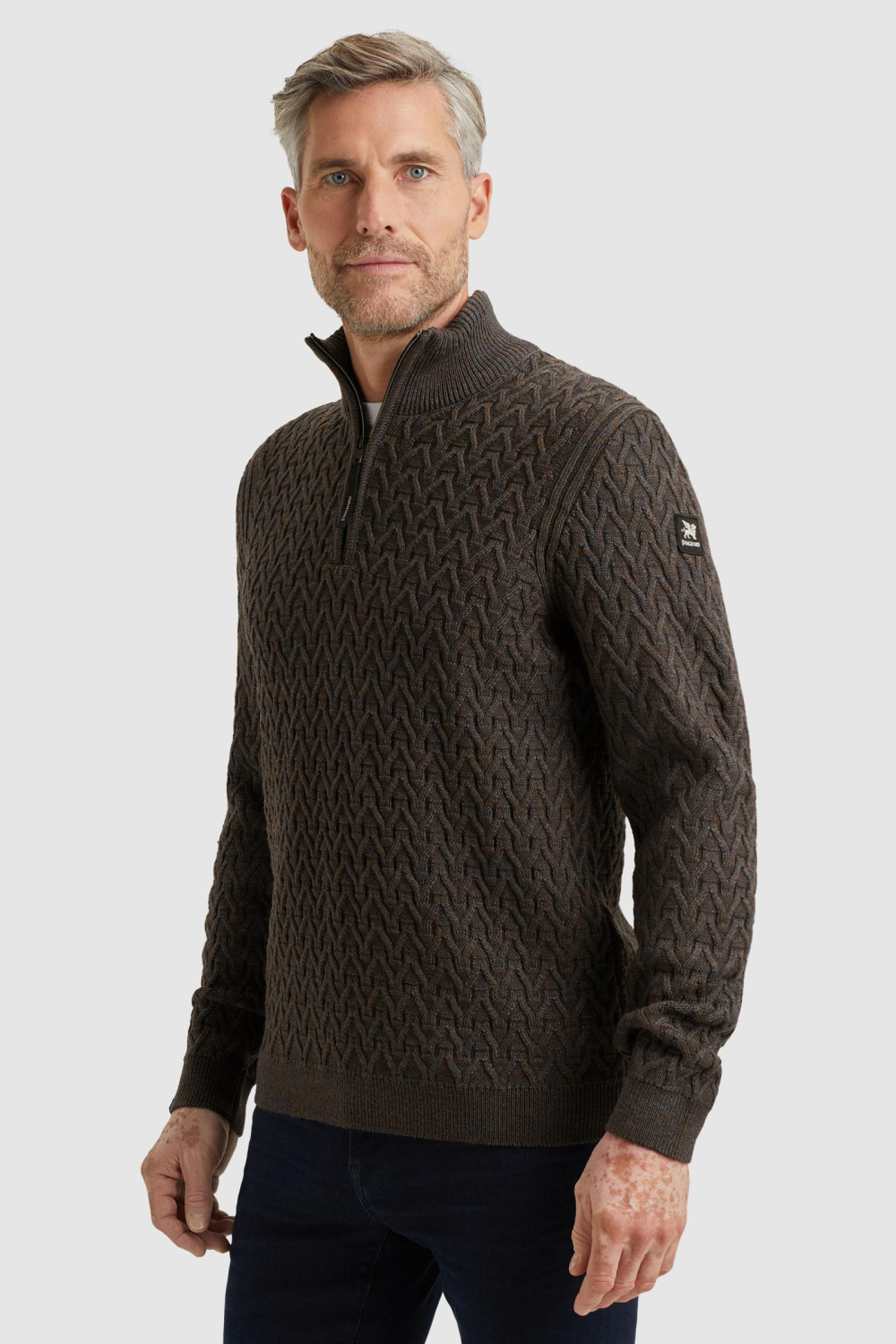 Deze stijlvolle bruine trui van Vanguard is een tijdloze aanwinst voor je herfstgarderobe. Met zijn regular fit en de kenmerkende kabelstructuur, biedt deze trui niet alleen comfort maar ook een moderne uitstraling. De hoge hals met ritssluiting voegt een praktisch element toe, perfect voor de koelere dagen. Het subtiele logo op de mouw benadrukt de kwaliteit en stijl van Vanguard, zonder te veel op te vallen. De Vanguard trui is veelzijdig en ideaal voor verschillende gelegenheden. Of je nu naar een informele bijeenkomst gaat of gewoon een dag op kantoor doorbrengt, dit kledingstuk biedt de juiste balans tussen casual en stijlvol. Combineer het met een donkere jeans voor een complete look die je moeiteloos kunt dragen. Dankzij het duurzame materiaal van deze knitwear ben je verzekerd van een lange levensduur en blijvend draagplezier, zonder concessies te doen aan stijl.