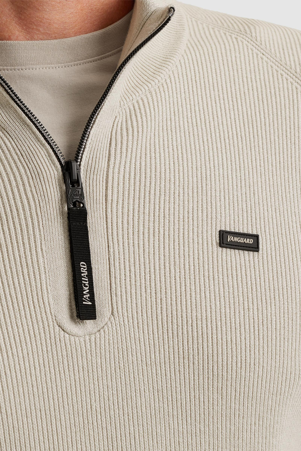 De Vanguard regular fit gebreide trui voor heren is een stijlvolle keuze voor koudere dagen. Met de kenmerkende structuur in een zachte, neutrale tint is deze knitwear perfect om je wintergarderobe compleet te maken. De high neck met ritssluiting zorgt voor extra warmte en biedt flexibiliteit in je look, ideaal voor zowel casual als meer geklede gelegenheden. Dankzij de lange mouwen en de normale lengte biedt deze trui optimaal comfort zonder in te leveren op stijl.