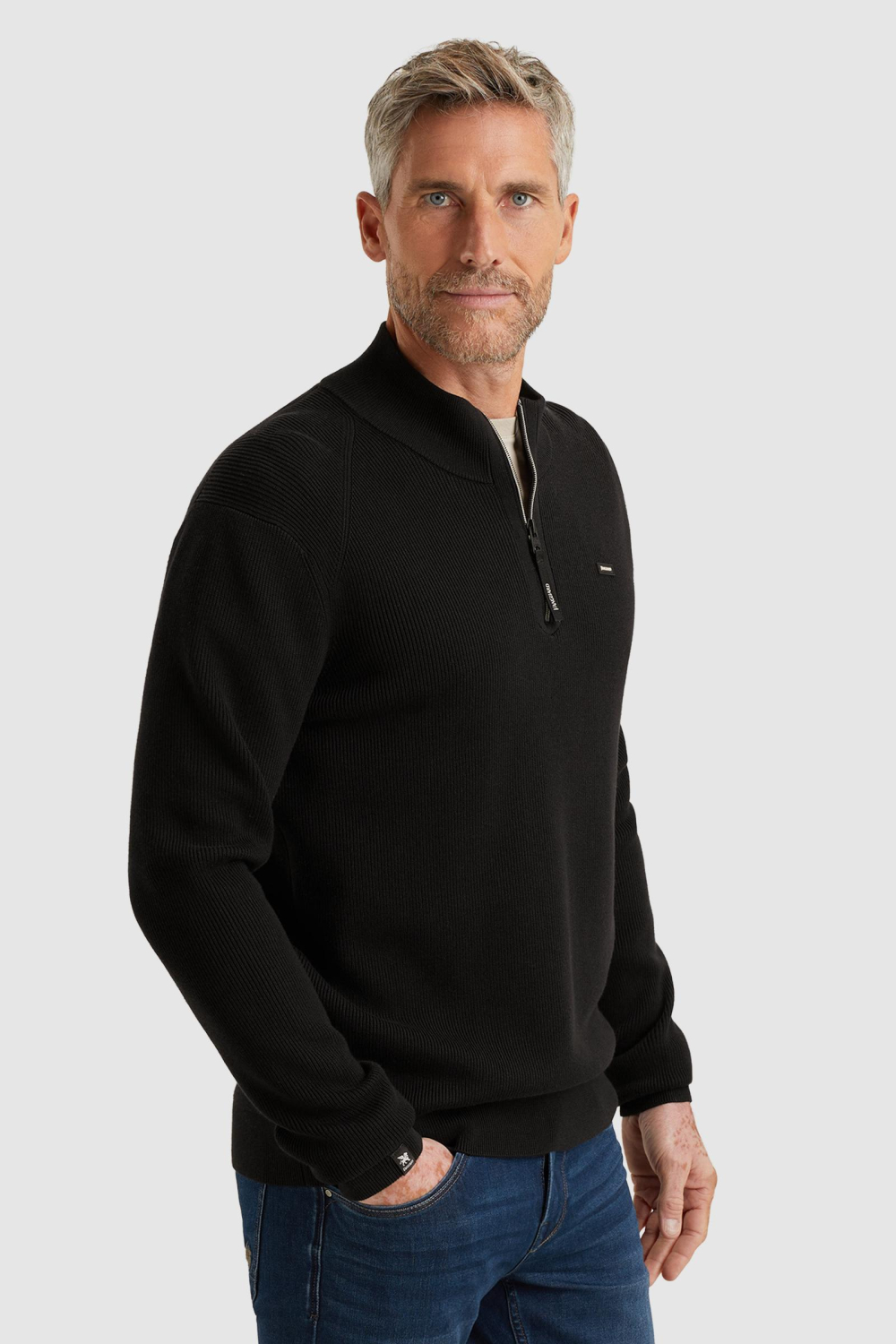 Deze zwarte trui van Vanguard combineert stijl en comfort op een perfecte manier. Met een hoge hals en een ritssluiting aan de voorkant, biedt deze trui een moderne uitstraling, ideaal voor de wintermaanden. Het structuurpatroon geeft de trui een subtiele dynamiek, waardoor je look net dat beetje extra krijgt. De regular pasvorm zorgt voor een relaxte maar verzorgde uitstraling, terwijl de lange mouwen je lekker warm houden. De Vanguard trui is gemaakt van knitwear en heeft een normale lengte, wat het een uitstekende keuze maakt voor diverse gelegenheden. Of je nu een dagje casual op pad gaat of iets stijlvols zoekt voor een informele werkomgeving, deze trui past altijd. Combineer 'm met een jeans voor een alledaagse look of draag 'm onder een jasje voor een nettere gelegenheid. Deze duurzame keuze is niet alleen een aanvulling op je garderobe, maar ook een blijvende investering.