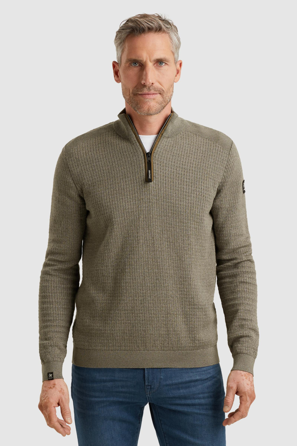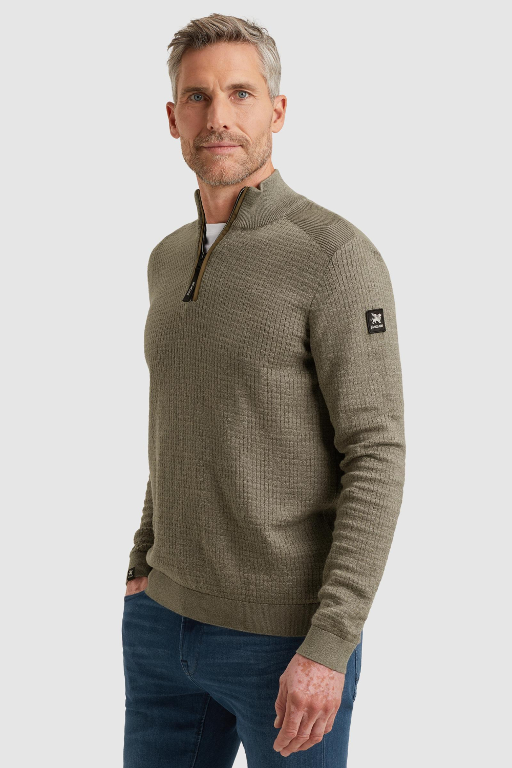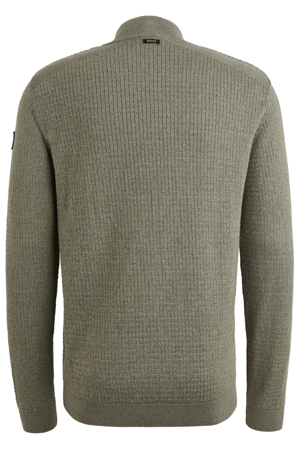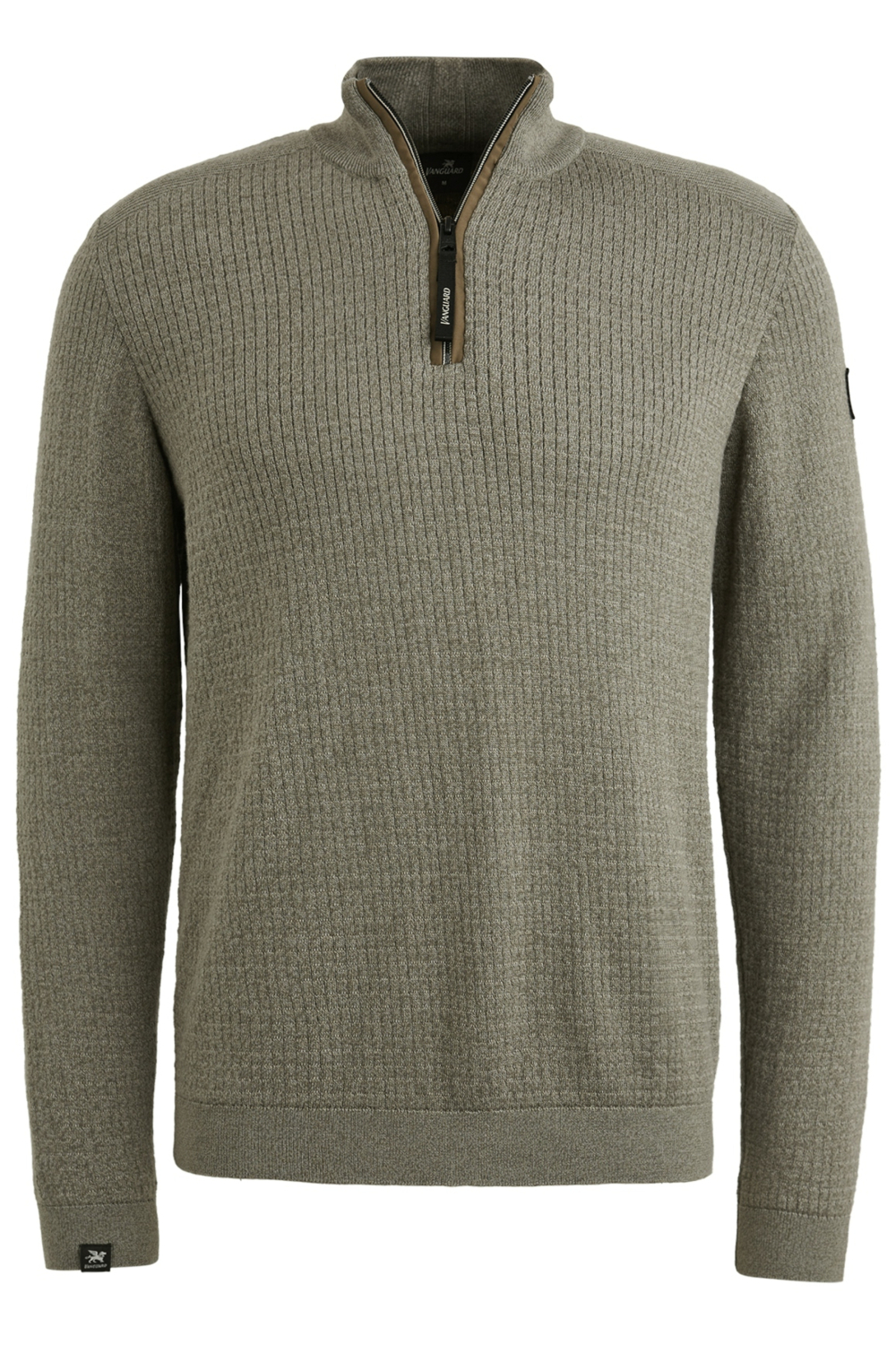 Deze gemêleerde Vanguard trui is een must in je garderobe voor het herfstseizoen. Gemaakt van 100% katoen, biedt hij comfort en een optimaal ademend vermogen. De trui heeft een high neck met een handige rits, wat het een modern en stijlvol karakter geeft. De groene kleur en de fijne structuur zorgen voor een tijdloze en veelzijdige uitstraling, waardoor hij gemakkelijk te combineren is met andere kledingstukken.