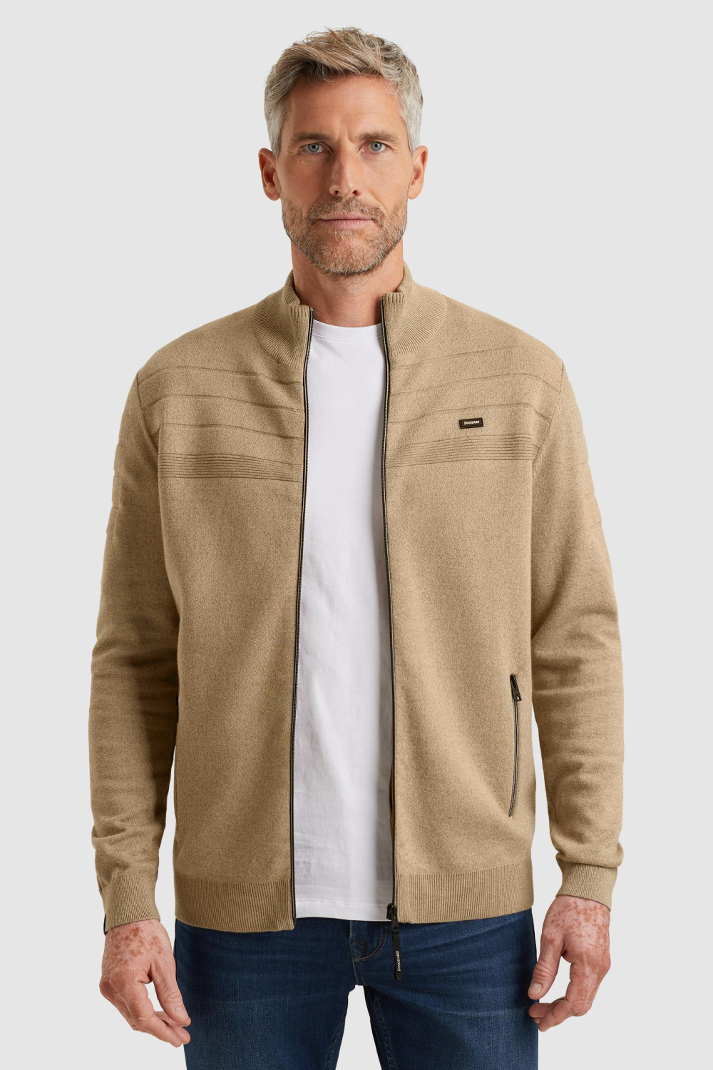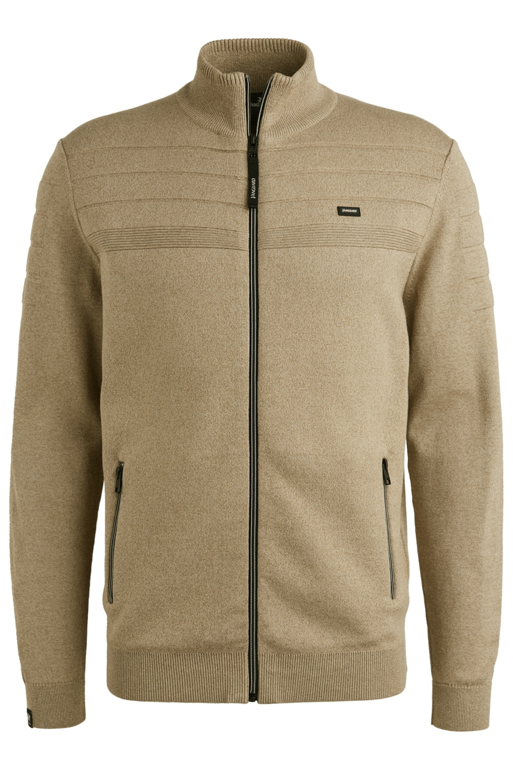 Dit gemêleerde heren vest van Vanguard is een veelzijdige keuze die perfect in je herfstgarderobe past. Het regular fit vest biedt een comfortabele pasvorm en is gemaakt van 100% katoen, waardoor het zacht aanvoelt en prettig draagt. De high neck en ritssluiting geven het vest een moderne uitstraling, terwijl het verfijnde stiksel op de borst subtiele details toevoegt die de stijl versterken. Met zijn beige tint is het gemakkelijk te combineren met diverse outfits.