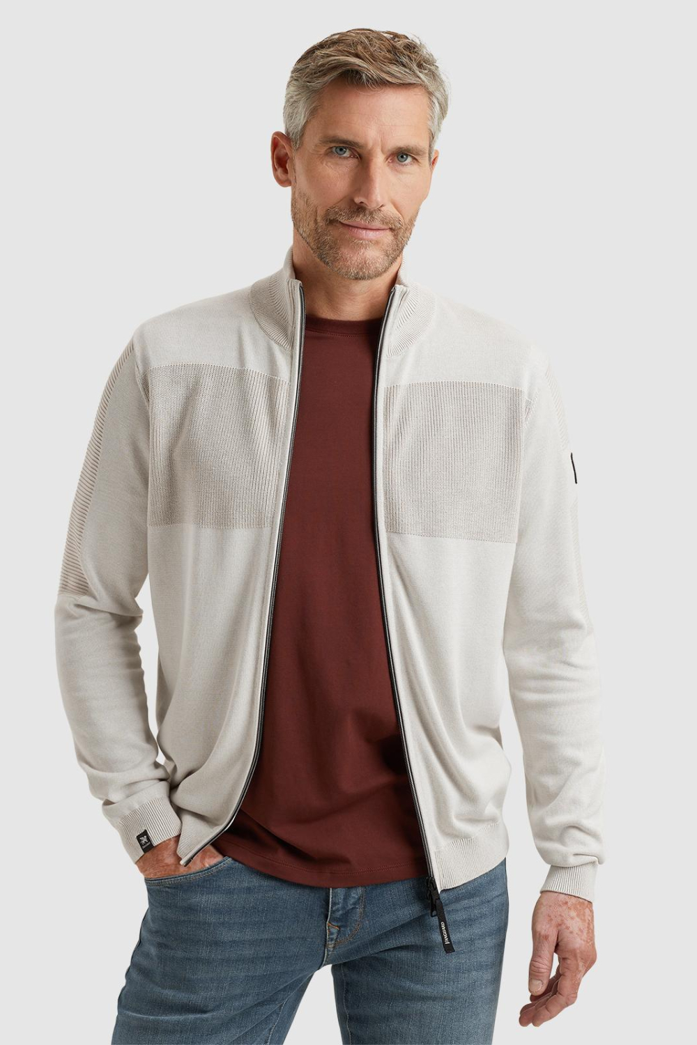Dit stijlvolle vest van Vanguard is een verfijnde keuze voor jouw wintergarderobe. Met zijn zachte structuur van 50% katoen en 50% modal tencel, biedt het niet alleen comfort maar ook een duurzame touch. De high neck en rits zorgen voor een moderne uitstraling, terwijl de regular pasvorm een tijdloze pasvorm biedt. De subtiele textuurdetails en de neutrale tint maken het makkelijk te combineren met verschillende outfits voor diverse gelegenheden, of je nu een casual dag hebt of iets clubs moet bezoeken.