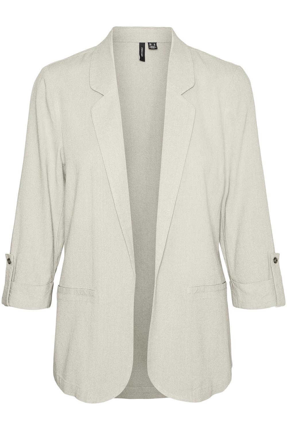 Deze Vero Moda blazer is een ideale match voor verschillende stylingopties. Combineer hem met een simpele jeans voor een ontspannen dagelijkse look, of draag hem over een jurk voor een meer verfijnde uitstraling. Dankzij zijn tijdloze ontwerp is hij geschikt voor zowel zakelijke als informele gelegenheden, zonder dat je hoeft in te boeten op comfort. De zachte zilveren tint maakt het eenvoudig om de blazer te combineren met andere kleuren en stijlen uit je garderobe. Voeg deze blazer toe voor een frisse, moderne touch aan je dagelijkse outfits.