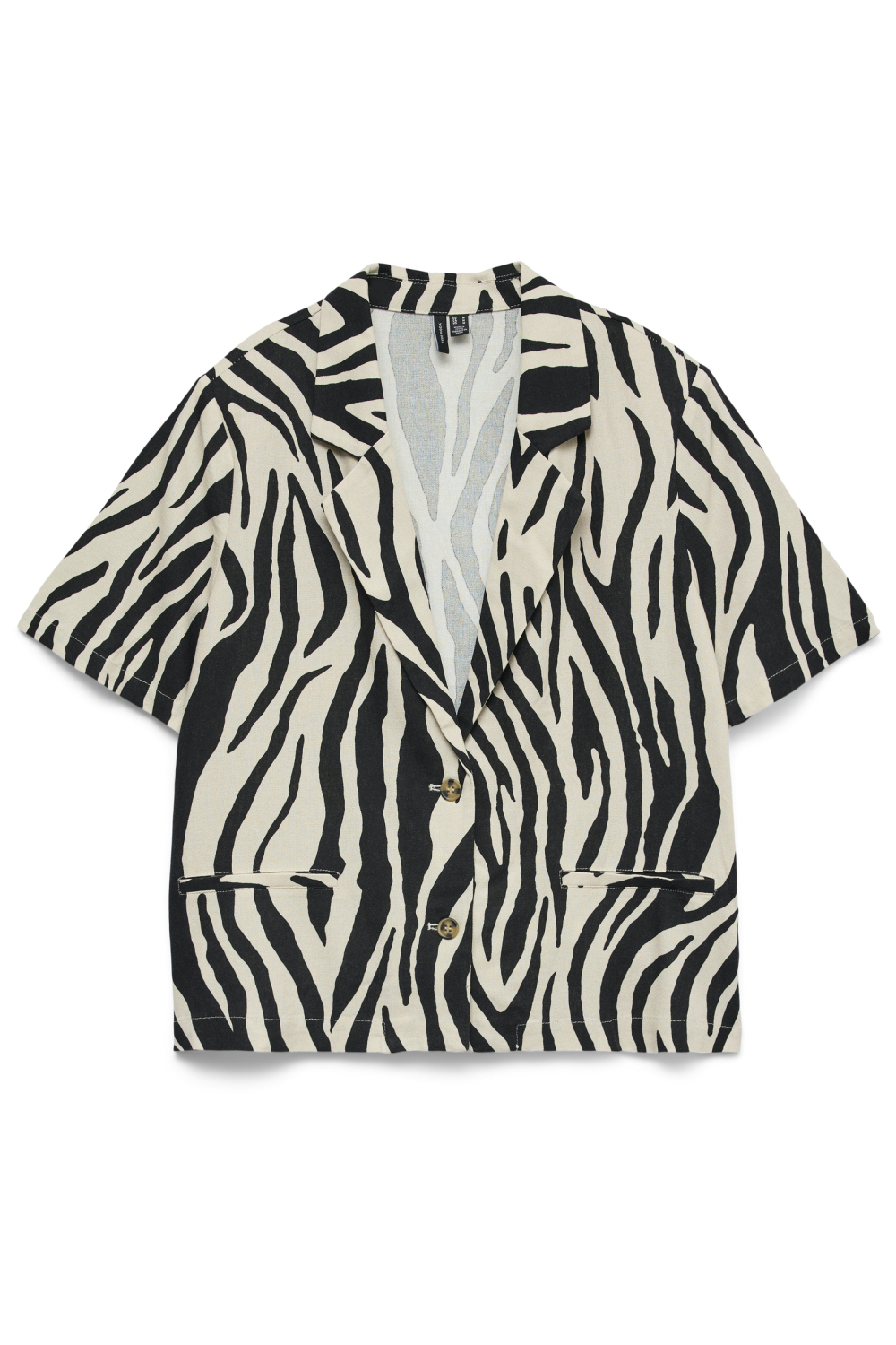 Deze casual Vero Moda blazer voor dames combineert stijl en comfort. De knoopsluiting en revers kraag geven het een elegant accent, terwijl het unieke animal-patroon zorgt voor een modieuze uitstraling. Gemaakt van een duurzame mix van 55% Viscose Lenzing Ecovero en 45% linnen, biedt deze blazer een luchtige pasvorm die perfect is voor de lente. De korte mouwen en regular fit maken het ideaal voor zowel dagelijkse outfits als iets apartere combinaties. Dankzij de stijlvolle zebraprint voegt deze blazer een speels element toe aan je garderobe. Met zijn paspelzakken biedt het niet alleen visuele aantrekkelijkheid maar ook functionaliteit. Combineer het met een lichte broek voor een ontspannen dagje uit of geef je zakelijke look een moderne twist. Of je nu gaat voor een speels of chic tintje, deze Vero Moda blazer is een veelzijdige keuze voor verschillende gelegenheden.