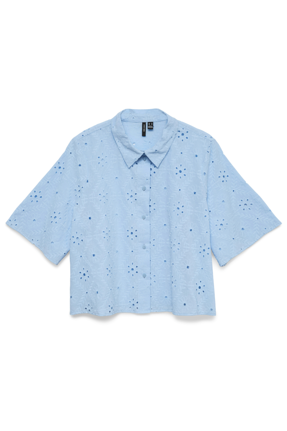 Deze zomerse blouse van Vero Moda biedt een perfecte combinatie van stijl en comfort. Het regular fit model, gemaakt van 100% biologisch katoen, zorgt voor een luchtige en duurzame ervaring. De azuurblauwe kleur en het ajour patroon geven een verfijnde, frisse uitstraling, ideaal voor een casual dagje uit of een gezellige middag met vrienden. De korte mouwen en de puntkraag vormen een klassieke, modieuze touch, terwijl de knoopsluiting een praktische en elegante afwerking biedt. De Vero Moda blouse past moeiteloos bij elke gelegenheid, van een picknick in het park tot een informele werkdag. Dankzij de normale lengte is de blouse veelzijdig te combineren met zowel jeans als een stijlvolle rok. Of je nu houdt van een ontspannen outfit of iets meer gekleed voor de dag wilt komen, deze blouse is makkelijk te stylen en daarmee een waardevolle aanvulling op je garderobe.