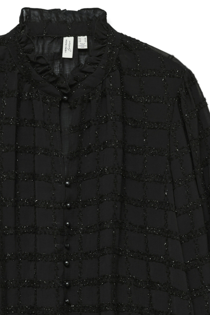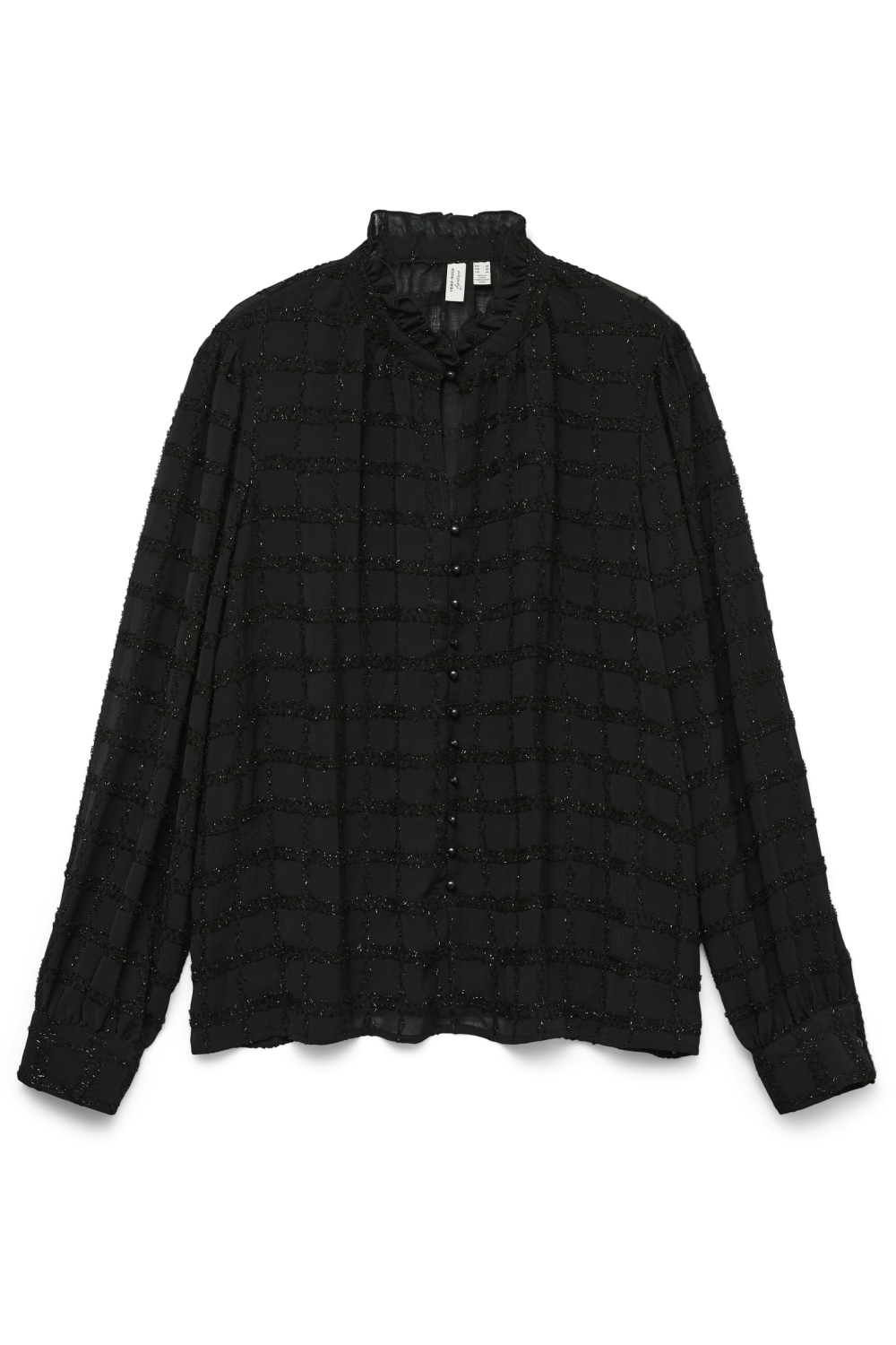 Deze elegante zwarte blouse van Vero Moda is een veelzijdige toevoeging aan je wintergarderobe. Met een regular pasvorm en vervaardigd uit 95% polyester en 5% metaalgaren, biedt het zowel comfort als een subtiel glinsterend patroon dat voor een verfijnde uitstraling zorgt. De ronde hals met subtiele ruches voegt een extra vleugje stijl toe. Deze blouse is ideaal voor casual gelegenheden, maar kan ook gemakkelijk omgetoverd worden voor een meer formele setting.