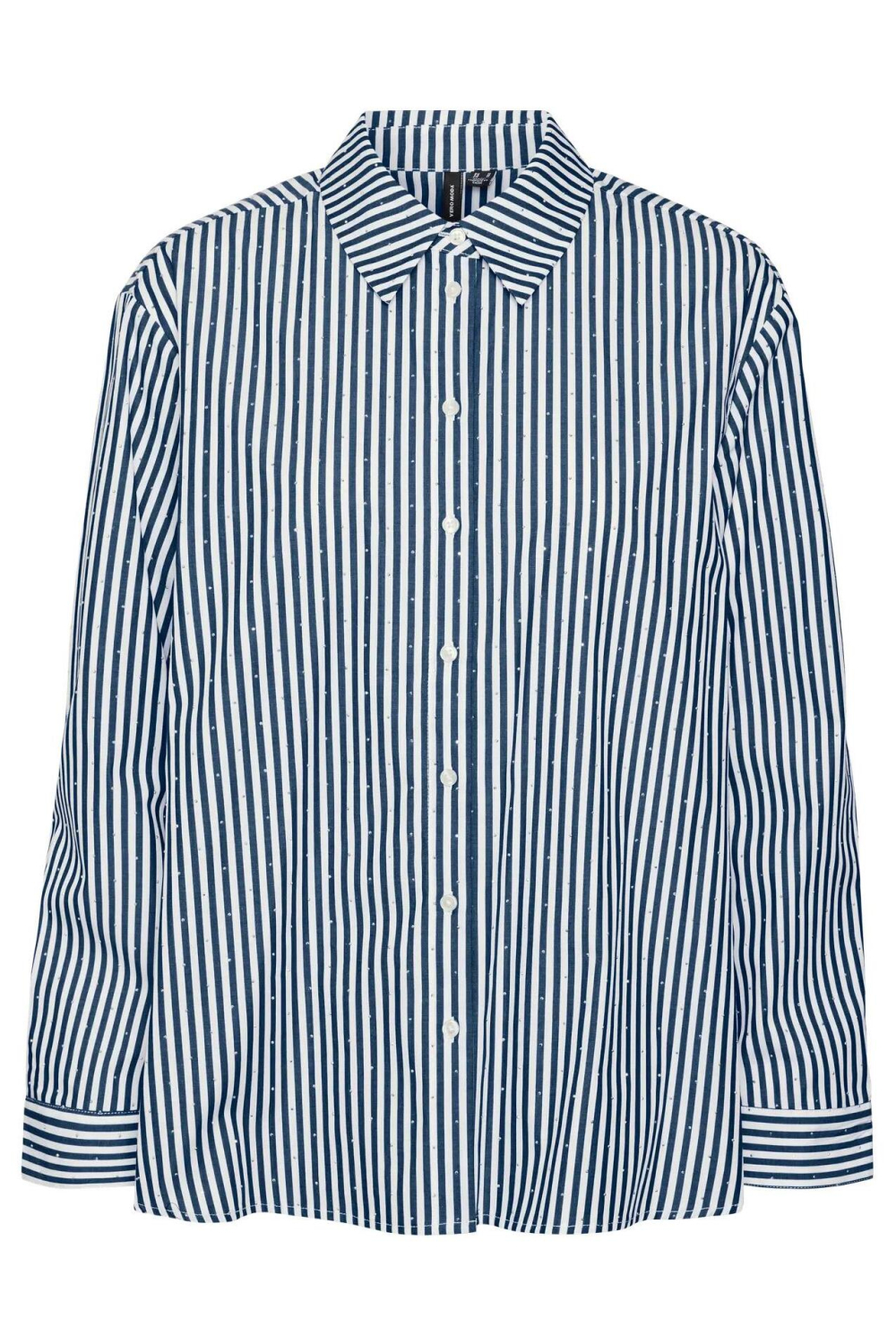 Deze casual blouse van Vero Moda is een stijlvol stuk dat perfect past bij de lentelook. Het patroon van subtiele verticale strepen en strass accenten geeft deze blouse een verfijnde touch, terwijl de puntkraag en knoopsluiting zorgen voor een klassieke uitstraling. Gemaakt van 100% katoen, biedt de blouse een comfortabel en ademend gevoel, ideaal voor de warmere dagen. De regular fit pasvorm en de lange mouwen maken het een veelzijdig kledingstuk dat zowel formeel als informeel te dragen is. De Vero Moda blouse kan gemakkelijk gecombineerd worden met zowel jeans als een nette pantalon, waardoor het een ideale keuze is voor diverse gelegenheden, van een dag op kantoor tot een ontspannen lunch. De normale lengte zorgt voor een nette uitstraling die toch casual aanvoelt. Of je nu een wandeling maakt in het park of een vergadering hebt, met deze blouse creëer je moeiteloos een stijlvolle en zorgeloze look.
