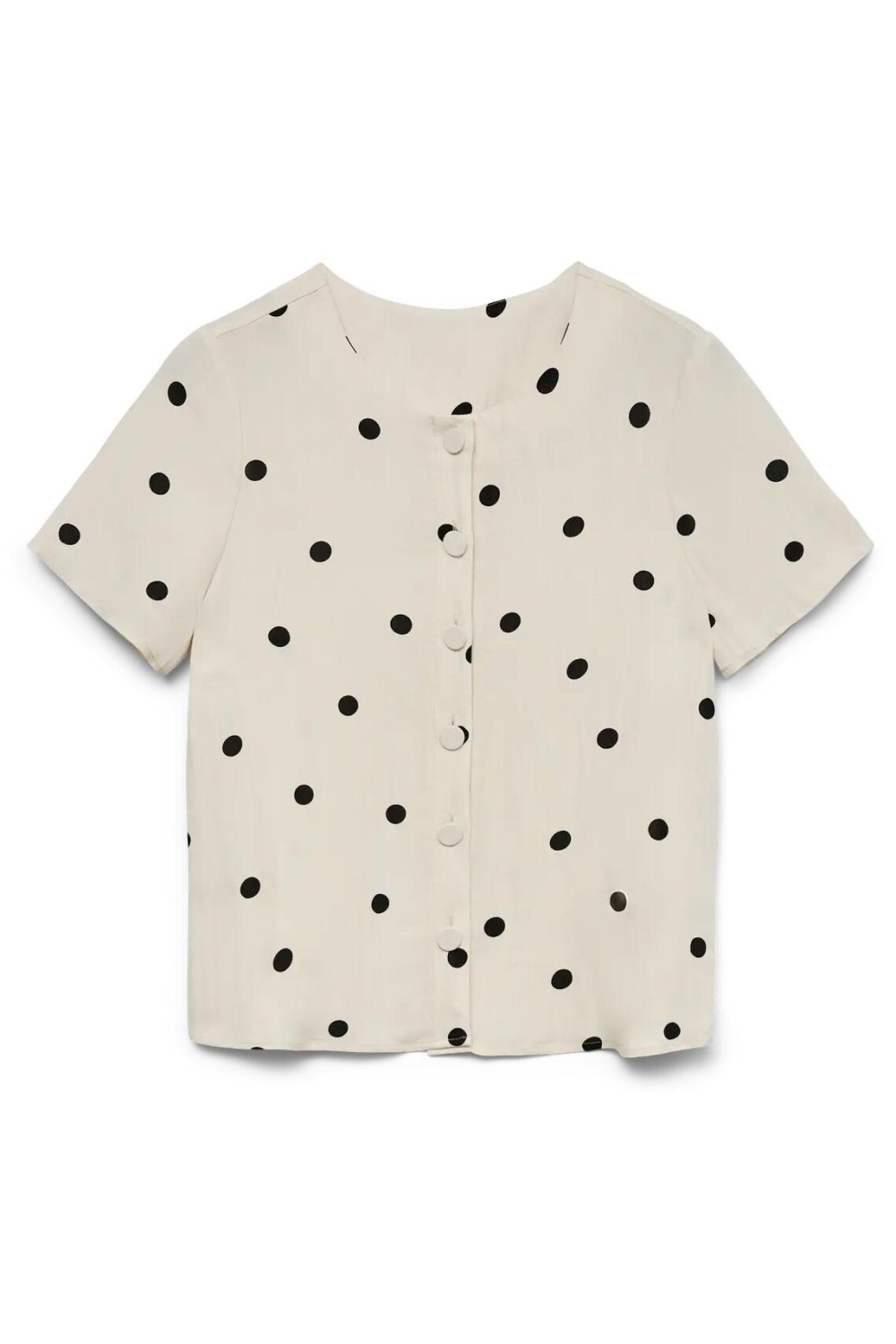 Deze Vero Moda blouse is een stijlvolle keuze voor de lente. De blouse heeft een regular fit en is ontworpen met een charmant stippenpatroon dat direct in het oog springt. Gemaakt van een lichte mix van 92% viscose en 8% polyester, biedt deze blouse een comfortabel en luchtig gevoel. De korte mouwen en ronde halslijn zorgen voor een casual look die ideaal is voor alledaagse uitstapjes of een ontspannen middag in het park. De blouse heeft een normale lengte en is dankzij de veelzijdige stijl eenvoudig te combineren met zowel jeans als een nette rok. De knoopsluiting aan de voorkant voegt een verfijnde touch toe, terwijl de subtiele kleuren je garderobe een frisse update geven. Of je nu een dagje naar het werk gaat of van een informele lunch met vrienden geniet, deze Vero Moda blouse is een betrouwbare keuze die moeiteloos bij verschillende gelegenheden past. Graag gedaan!