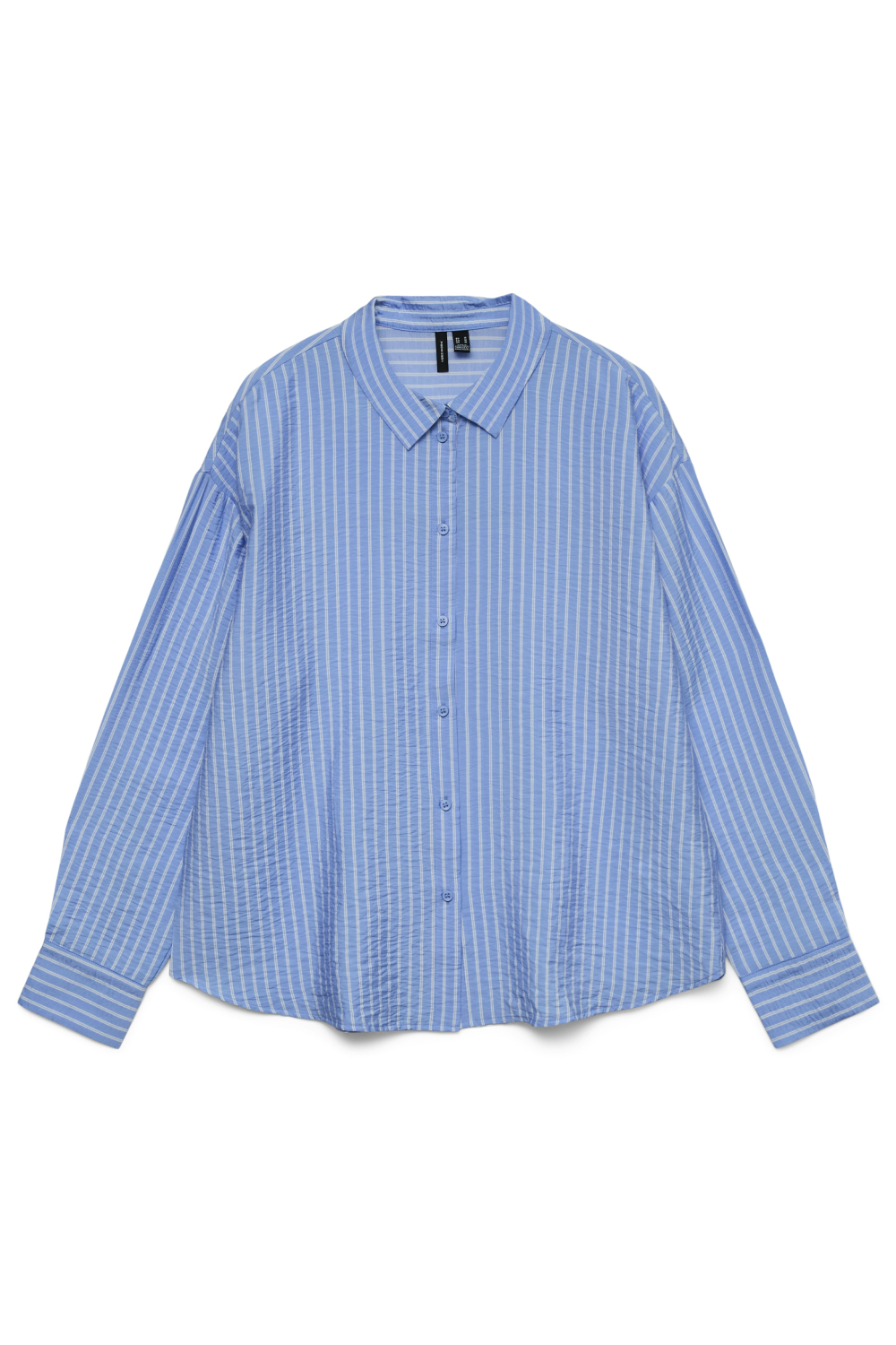 Deze blauwe streepblouse van Vero Moda is een stijlvolle toevoeging aan je lente-garderobe. Met een regular fit pasvorm biedt het zowel comfort als een moderne uitstraling. De subtiele blauwe en witte strepen geven een frisse, eigentijdse look die zowel casual als chic gedragen kan worden. De puntkraag en knoopsluiting zorgen voor een klassieke en verfijnde afwerking. Gemaakt van een zachte stof, is deze blouse ideaal voor dagelijkse activiteiten of een ontspannen dag op kantoor. Combineer het met een jeans voor een casual uitstraling of draag het met een nette pantalon voor een meer geklede look. De volledige lange mouwen en de normale lengte maken het een veelzijdig kledingstuk dat in elk seizoen kan worden gedragen. Deze blouse is niet alleen stijlvol maar ook duurzaam, een bewuste keuze voor de modebewuste vrouw.
