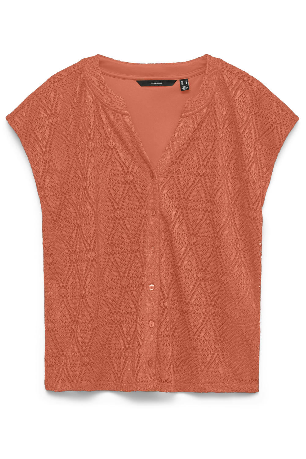Deze Vero Moda blouse is een stijlvolle toevoeging aan je zomergarderobe. De blouse kenmerkt zich door het luchtige ajourpatroon en een subtiele, warme terracotta tint. De V-hals zorgt voor een verfijnde uitstraling, terwijl de regular fit een comfortabele pasvorm biedt. Gemaakt van 95% polyester en 5% elastaan, voelt de stof zacht aan op je huid en blijft deze mooi, zelfs na veelvuldig dragen. Met korte mouwen is dit model perfect voor de warmere dagen. Dankzij het tijdloze ontwerp is deze Vero Moda blouse makkelijk te combineren. Draag het met een lichte jeans voor een casual look, of combineer het met een rok voor een meer geklede outfit. Of je nu naar een zomers feestje gaat of een ontspannen dagje in de stad plant, deze blouse is een veelzijdige keuze die je stijlvol in iedere situatie laat stralen.