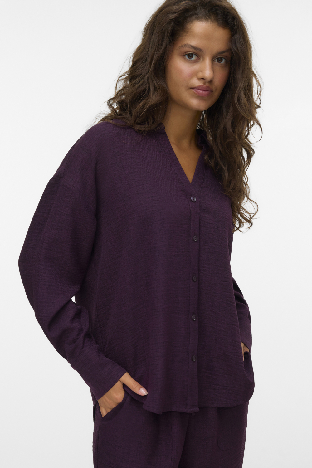 Deze casual blouse van Vero Moda, uitgevoerd in de prachtige kleur 'Wine Tasting', biedt een ontspannen en stijlvolle uitstraling. Met een relaxed fit en een puntkraag is deze blouse zowel comfortabel als modieus. De blouse heeft een klassieke knoopsluiting en is gemaakt van 100% polyester, wat het een luchtige keuze maakt voor dagelijks gebruik. De lange mouwen en de normale lengte zorgen voor een flatterende pasvorm die gemakkelijk te combineren is met verschillende outfits.
