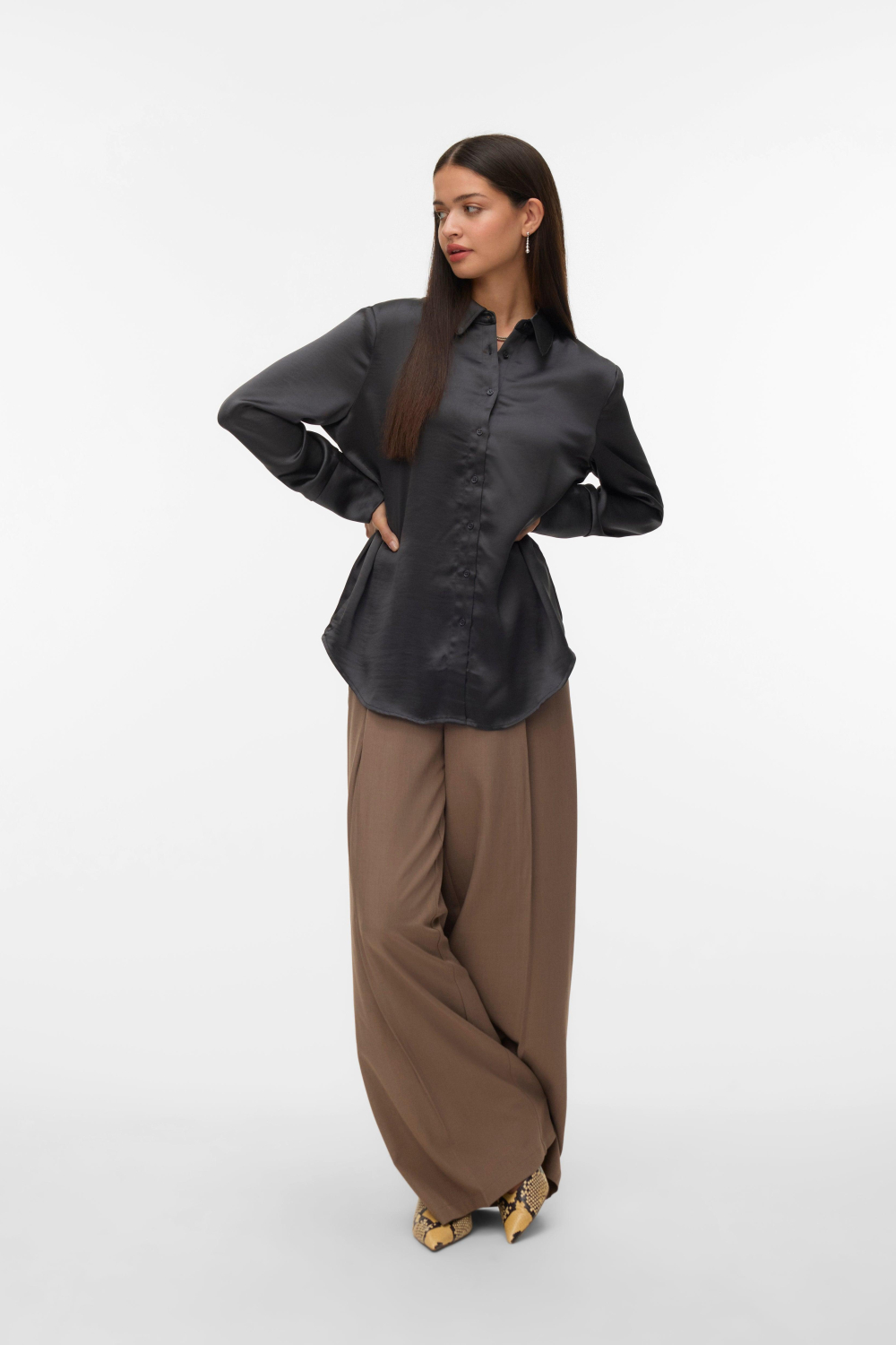 Deze elegante Vero Moda damesblouse in de kleur 'Asphalt' is een stijlvolle keuze voor jouw herfstgarderobe. Gemaakt van 100% gerecycled polyester, biedt deze blouse niet alleen een duurzame optie maar ook een zachte en comfortabele stof. De relaxed fit zorgt voor een ontspannen draagervaring, terwijl de klassieke puntkraag en knoopsluiting het geheel een verfijnde uitstraling geven. Met zijn glanzende afwerking en tijdloze ontwerp past deze blouse perfect bij zowel casual als meer formelere outfits.