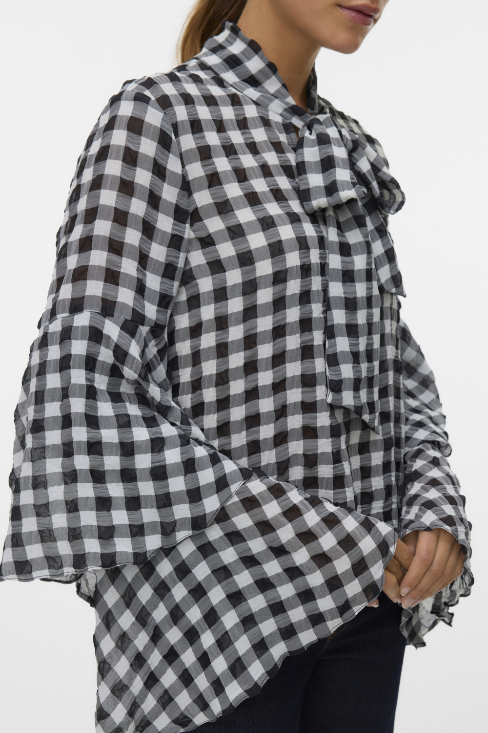 Het tijdloze geblokte patroon maakt het eenvoudig om te combineren met je favoriete jeans of een nette broek, afhankelijk van de gelegenheid. De blouse heeft een normale lengte en is ontworpen om veelzijdig te zijn. Of je nu een casual look wilt creëren of iets geraffineerder voor een bijeenkomst, deze blouse van Vero Moda past perfect. Dankzij de aandacht voor detail en de duurzame materiaalkeuze, is dit een bewuste toevoeging aan je kledingkast die je keer op keer kunt dragen.