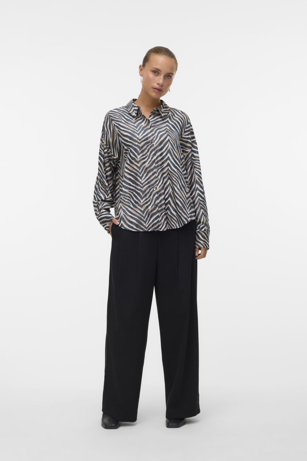 De Vero Moda blouse, gekenmerkt door het opvallende grafische patroon, is een stijlvolle aanvulling voor elke casual outfit. Gemaakt van een mix van 69% viscose en 31% polyester, biedt deze blouse een soepele en comfortabele pasvorm. De puntkraag en subtiele knoopsluiting geven een verfijnde touch aan het ontwerp, terwijl het zwart met Sonya-kleurenschema zorgt voor een veelzijdige look. Met een regular fit en lange mouwen is deze blouse ideaal voor winterse dagen, maar ook geschikt voor een ontspannen werksfeer of een casual uitje. Door het unieke patroon voegt de blouse een speelse en modieuze dimensie toe aan je garderobe. Combineer hem met een elegante broek voor een stijlvolle uitstraling of met jeans voor een dagelijks ensemble. Deze blouse past bij elke gelegenheid, van een informele koffiedate tot een ontspannen dag op kantoor. Met zijn normale lengte valt hij soepel over je favoriete broek of rok, waardoor je eenvoudig voor comfort en stijl kunt zorgen.