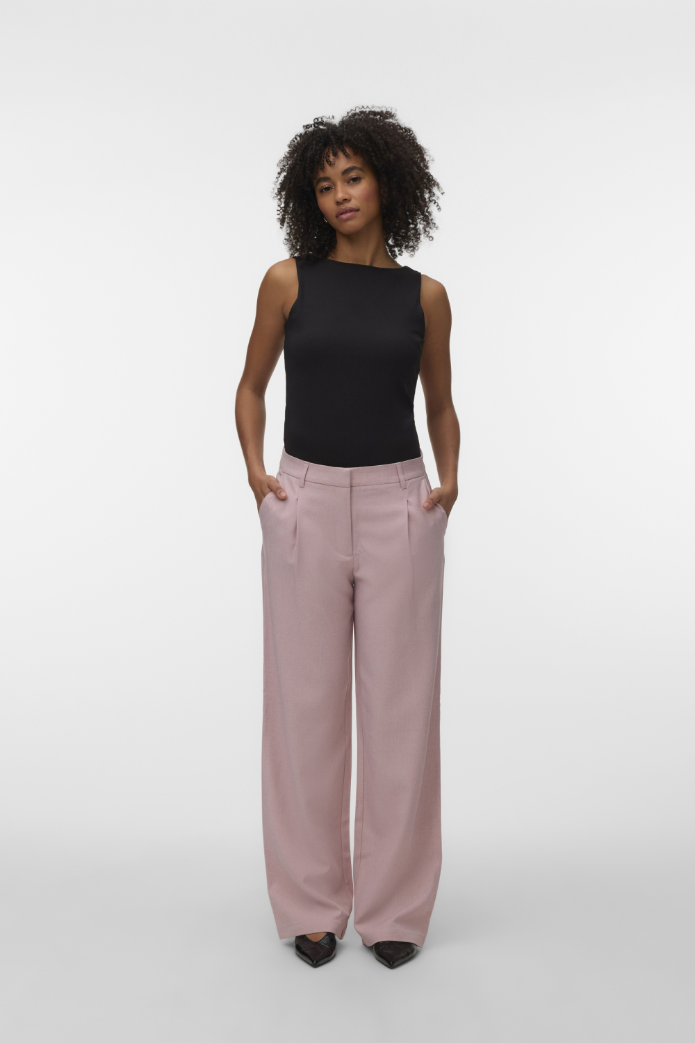Deze elegante wide leg broek van Vero Moda biedt een perfecte aanvulling op jouw lente garderobe. De broek is vervaardigd van een duurzame mix van 95% gerecycled polyester en 5% elastaan, wat zorgt voor zowel comfort als een milieuvriendelijke keuze. De zachte, licht roze tint geeft je outfit een verfijnde uitstraling. Dankzij de regular waist pasvorm biedt de broek zowel stylingopties als draagcomfort, ideaal voor dagelijks gebruik. De casual stijl van deze broek maakt het een veelzijdig kledingstuk dat je gemakkelijk kunt combineren voor diverse gelegenheden. Of je nu een ontspannen dagen hebt of naar een informele bijeenkomst gaat, deze broek biedt een stijlvolle oplossing. De normale lengte en subtiele details zoals de nette knoopsluiting en riemlussen maken het geheel af. Combineer met een eenvoudig T-shirt voor een relaxte look of met een elegante blouse voor een meer geklede uitstraling. Dit kledingstuk is een praktische en modieuze keuze voor elke dag.