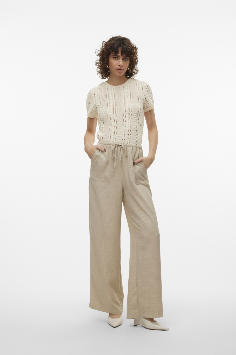 Deze stijlvolle Vero Moda broek is een veelzijdige toevoeging aan je garderobe. De broek is uitgevoerd in een gemêleerd patroon en heeft een comfortabele elastische boord, wat zorgt voor een moeiteloze pasvorm. De high waist en wide leg silhouet geven een moderne uitstraling, ideaal om zowel casual als chic te dragen. Dankzij de steekzakken is deze broek niet alleen stijlvol, maar ook praktisch voor dagelijks gebruik. Het materiaal van 100% polyester draagt bij aan de duurzaamheid en het comfort, waardoor je de broek het hele jaar door kunt dragen.