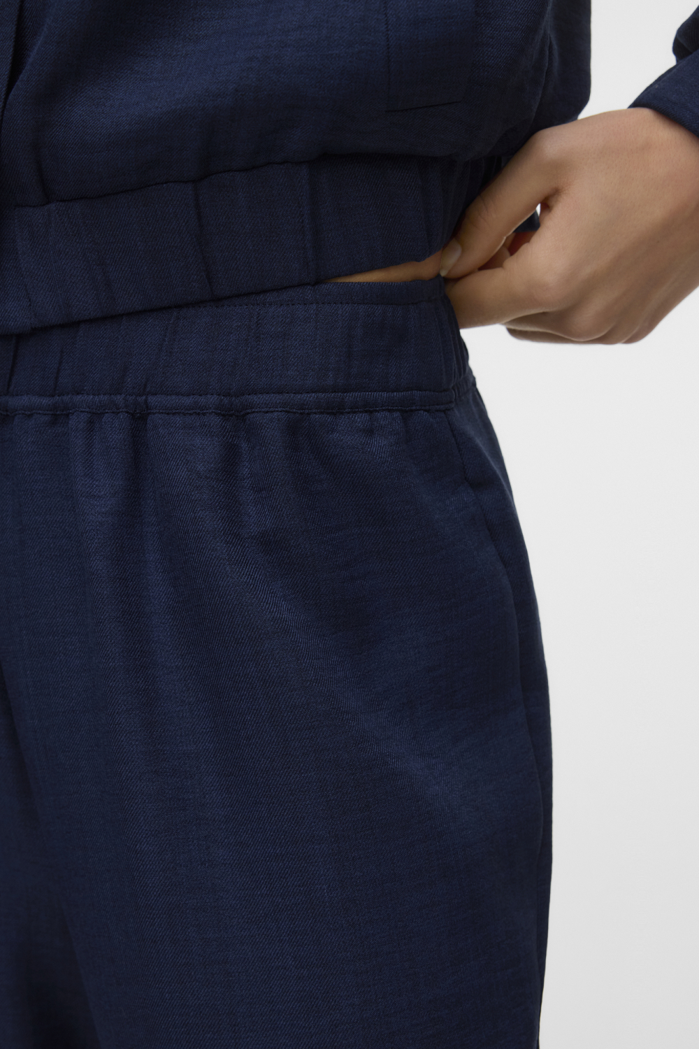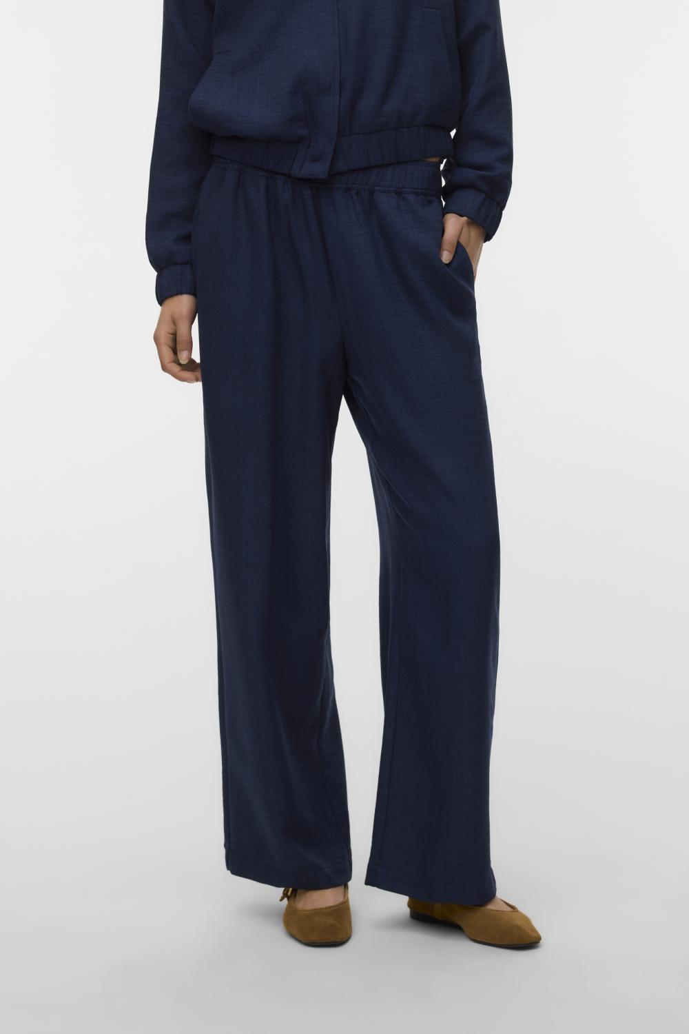 Deze navy blazer broek van Vero Moda is een mooie aanvulling voor je dagelijkse garderobe. Gemaakt van 100% polyester, biedt deze broek een lichte en comfortabele pasvorm die perfect is voor het lente seizoen. De straight fit geeft je een moeiteloze en moderne look, terwijl de elastische boord zorgt voor een gemakkelijk draagcomfort. Met subtiele steekzakken blijft het ontwerp stijlvol en functioneel. Het gestructureerde patroon voegt een unieke textuur toe, wat de broek een extra dimensie geeft. De Vero Moda broek is ideaal voor verschillende dagelijkse situaties. Of je nu een ontspannen dag thuis hebt of een casual uitstapje plant, met deze broek maak je altijd een fijne indruk. De regular waist zorgt ervoor dat je hem eenvoudig kunt combineren met verschillende tops voor een complete outfit. Deze tijdloze keuze biedt de perfecte balans tussen stijl en gemak, waardoor je je zowel comfortabel als zelfverzekerd voelt tijdens het dragen.