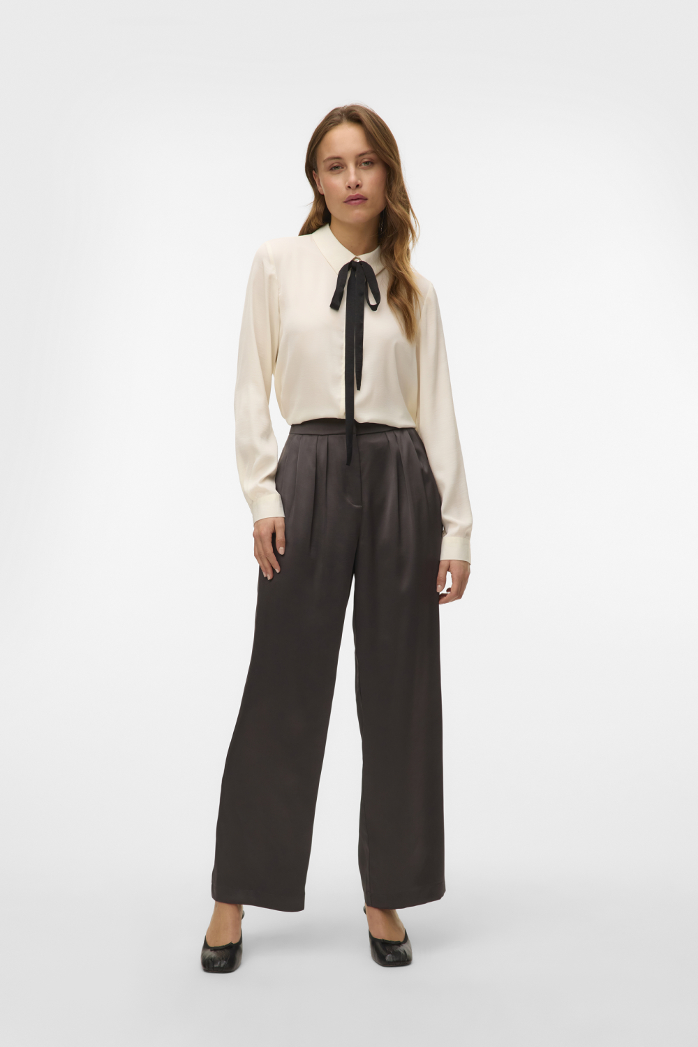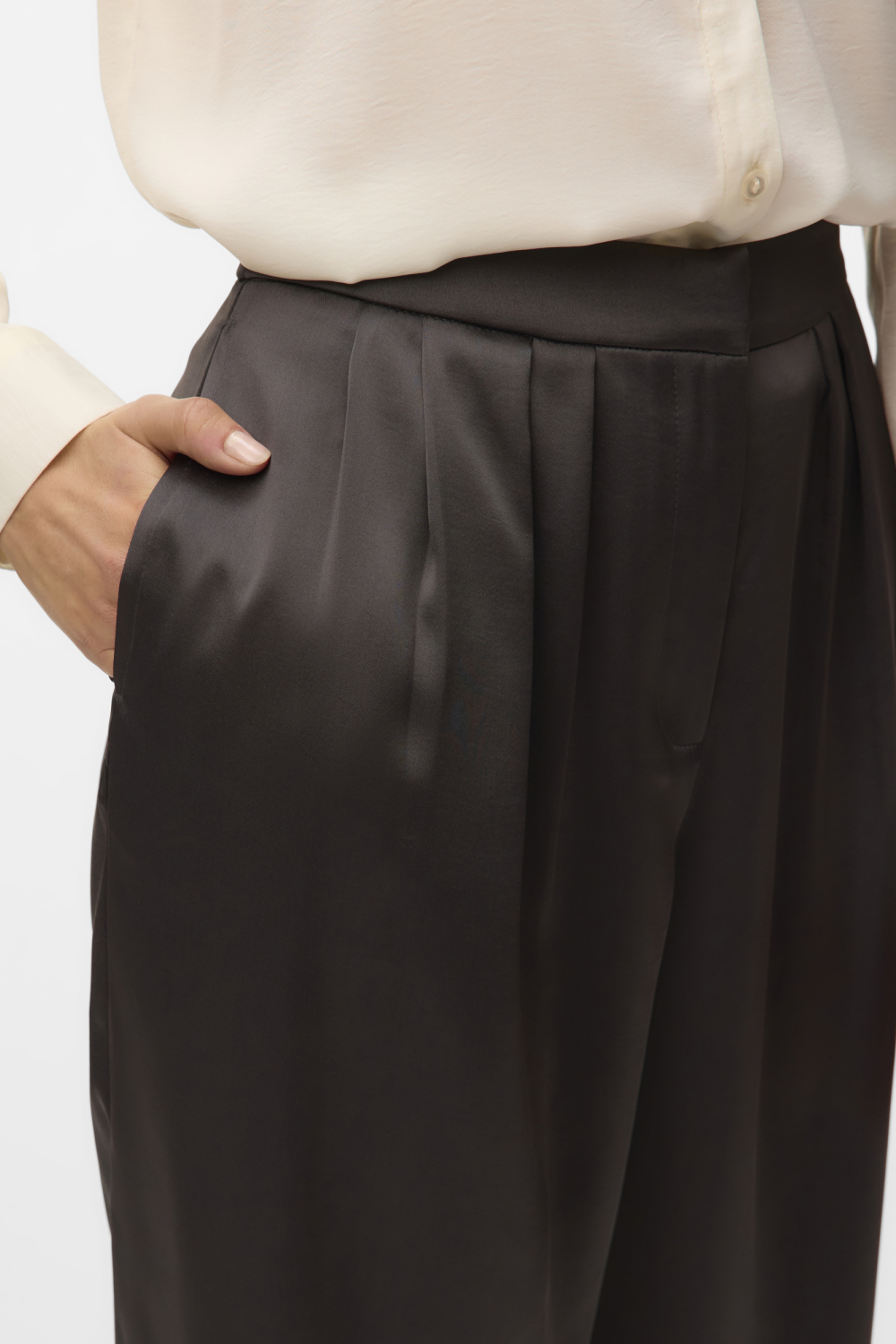 Deze elegante asphalt broek van Vero Moda is een stijlvolle toevoeging aan je kledingcollectie. Ontworpen met een high waist pasvorm en wijd uitlopende pijpen, biedt deze broek niet alleen comfort maar ook een verfijnde uitstraling. Met steekzakken aan de zijkant is het zowel praktisch als modieus. Gemaakt van 100% gerecycled polyester, is het een duurzame keuze voor de milieubewuste modebewuste vrouw. De broek is ideaal voor casual gelegenheden in de herfst. Je kunt het eenvoudig combineren met een nette blouse voor een chique kantoordag of draag het met een comfortabel T-shirt voor een relaxte brunch met vrienden. De knoop- en ritssluiting zorgt voor een gemakkelijke pasvorm en de normale lengte maakt het perfect om zowel met hakken als sneakers te dragen. Voeg deze veelzijdige Vero Moda broek toe aan je garderobe voor een eigentijdse en stijlvolle look.