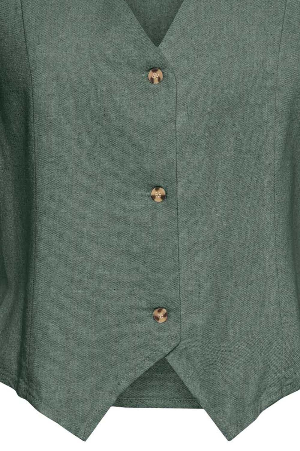 Dit stijlvolle gilet van Vero Moda is een perfecte aanvulling op je casual lente garderobe. Gemaakt van een duurzame mix van 55% Viscose Lenzing Ecovero en 45% linnen, biedt het een comfortabele en zachte stof die ideaal is voor uiteenlopende gelegenheden. Met zijn v-hals en knoopsluiting voegt het een klassieke touch toe aan je outfit, terwijl de laurel wreath kleur zorgt voor een subtiele, maar opvallende look. Het Vero Moda gilet heeft een regular pasvorm die moeiteloos combineert met verschillende stijlen, of je nu kiest voor een casual dag op het terras of een informele werkbijeenkomst. De mouwloze uitvoering maakt het veelzijdig en geschikt voor warmere dagen. Draag het over een eenvoudige top of een blouse voor extra flair. Dit gilet is niet alleen een praktische keuze, maar ook een stijlvolle aanvulling die zorgt voor een geraffineerde look.
