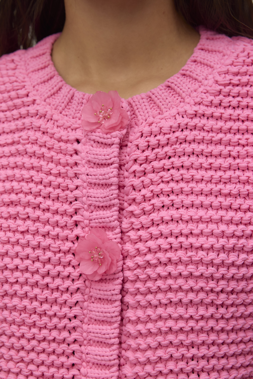 Dit modieuze Pink Cosmos gilet van Vero Moda is perfect voor de zonnige zomerdagen. Het gilet valt in de categorie knitwear en biedt met zijn regular pasvorm optimaal comfort. De ronde halslijn, gecombineerd met de verfijnde bloemvormige knopen, geeft een speelse twist aan de klassieke uitstraling. Het mouwloze ontwerp maakt het veelzijdig en geschikt voor elke gelegenheid, of je nu een wandeling maakt in het park of een informele bijeenkomst hebt. Het gilet is gemaakt van 100% gerecycled polyester, wat bijdraagt aan een duurzamere keuze voor je garderobe. De levendige roze tint voegt energie toe aan je outfit en kan eenvoudig worden gecombineerd met zowel lichte als donkere kleuren. Dankzij de normale lengte en vlechtstructuur is het een ideale layering piece over een simpele top. Combineer het met een lichtgekleurde jeans voor een casual look of een nette rok voor een iets elegantere outfit. Met dit gilet kies je voor stijl en milieubewustzijn in één.