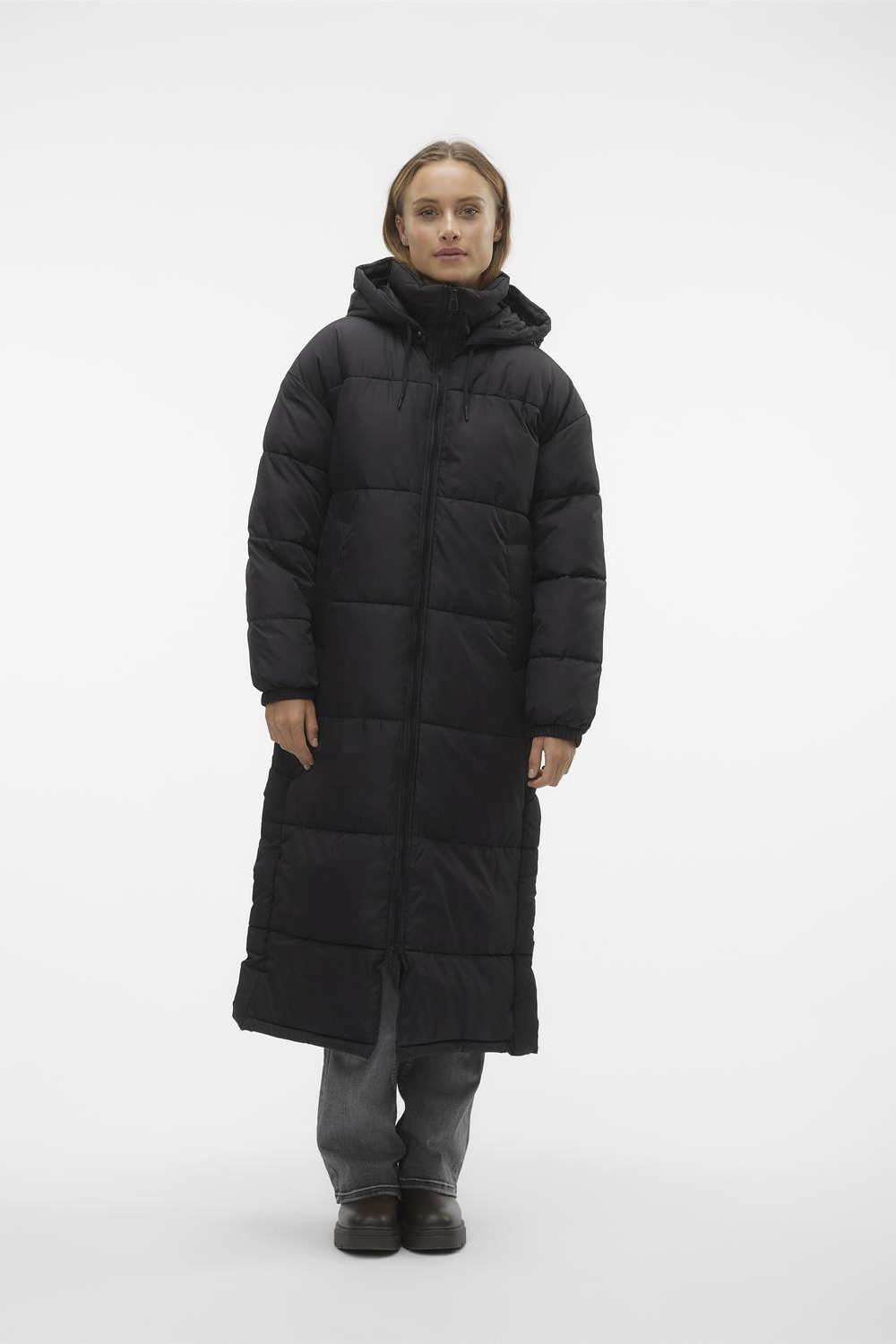 Deze zwarte lange jas van Vero Moda is een comfortabele keuze voor de koude dagen. Gemaakt van 100% polyester, biedt de jas een gewatteerde voering die je warm houdt zonder afbreuk te doen aan stijl. De capuchon en ritssluiting zorgen voor extra bescherming tegen wind en regen. Met zijn regular fit pasvorm en lange mouwen past deze jas perfect in jouw casual wintergarderobe.