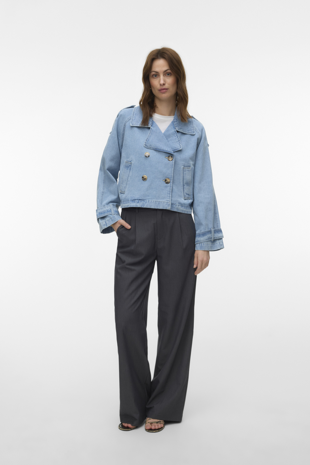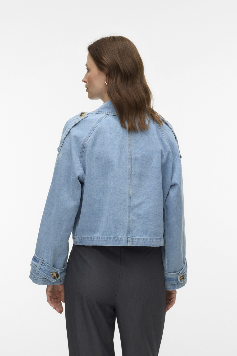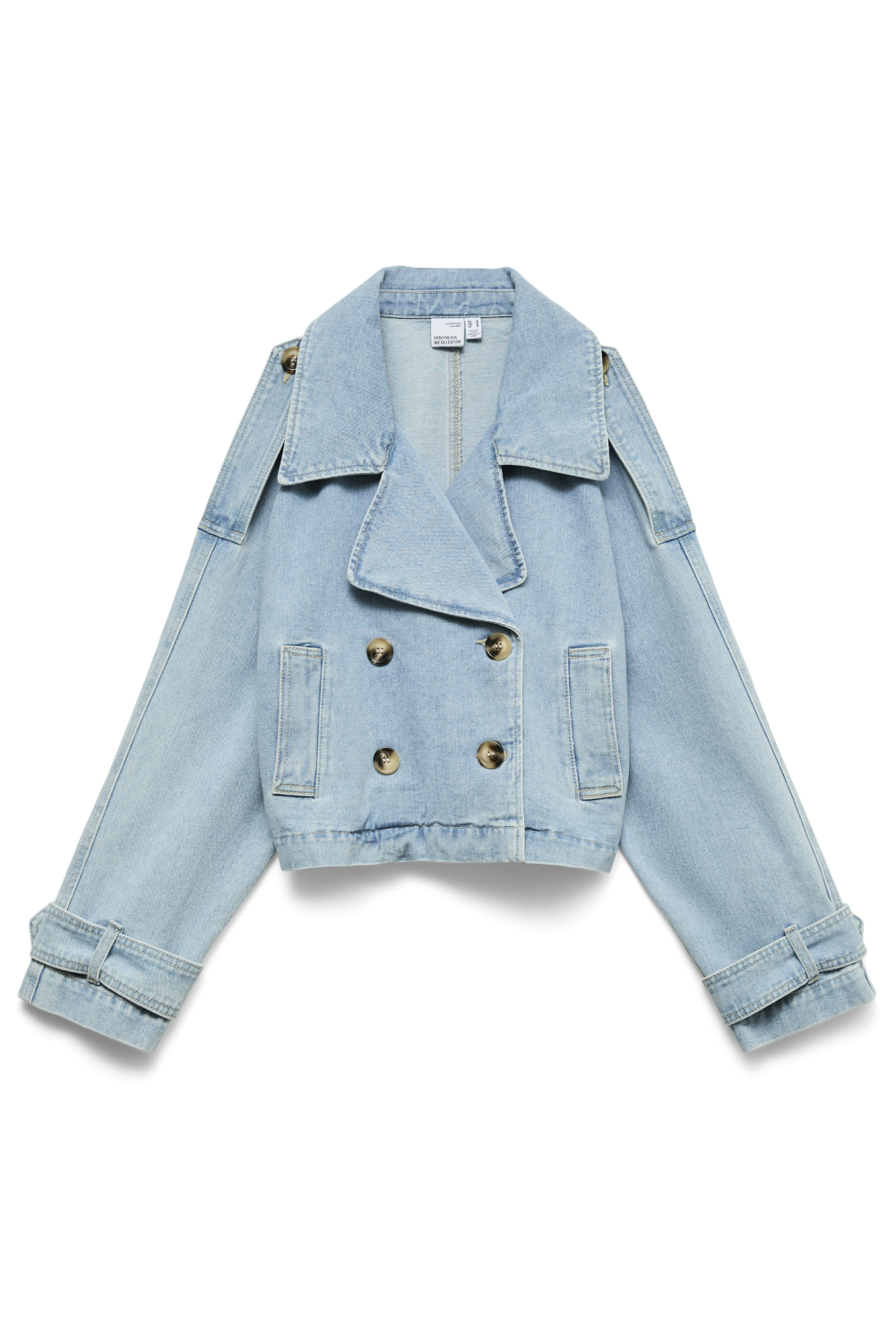 Deze stijlvolle light blue denim jas van Vero Moda is een veelzijdige toevoeging aan je lente garderobe. De jas is gemaakt van een duurzame mix van 80% katoen en 20% polyester, wat zorgt voor een prettig draagcomfort. Met zijn bleached wash en unieke design, voegt deze jas een frisse touch toe aan elke outfit. Dankzij de dubbele knoopsluiting en de opvallende reverskraag kun je rekenen op een modieuze uitstraling. De jas heeft een korte lengte en een regular fit, waardoor hij zowel trendy als comfortabel is. De paspelzakken voegen subtiele details toe die zowel stijl als functionaliteit bieden. Of je nu een dagje in de stad doorbrengt of een informele bijeenkomst hebt, deze denim jas is altijd een goede keuze. De lange mouwen maken hem geschikt voor wisselvallig lenteweer, terwijl de lichte kleur gemakkelijk te combineren is met verschillende stijlen. Draag hem met je favoriete jeans voor een casual look, of combineer hem met een rok voor een speelse touch. Deze Vero Moda jas biedt de perfecte balans tussen stijl en comfort, waardoor hij ideaal is voor dagelijks gebruik.