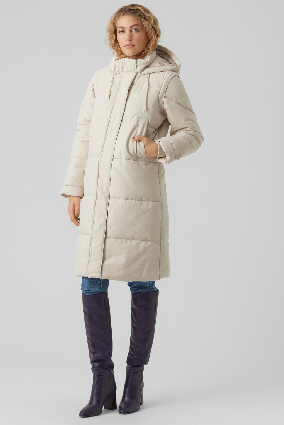 Deze elegante Vero Moda winterjas in de kleur Oatmeal is een must-have voor jouw garderobe. De stijlvolle halflange jas is voorzien van een comfortabele capuchon en lange mouwen, wat hem ideaal maakt voor de koudere maanden. Dankzij de gewatteerde polyester voering blijf je heerlijk warm, terwijl de praktische steekzakken je handen beschermen tegen de kou. De combinatie van een knoop- en ritssluiting zorgt ervoor dat je beschermd bent tegen alle weersomstandigheden, zonder in te leveren op stijl.