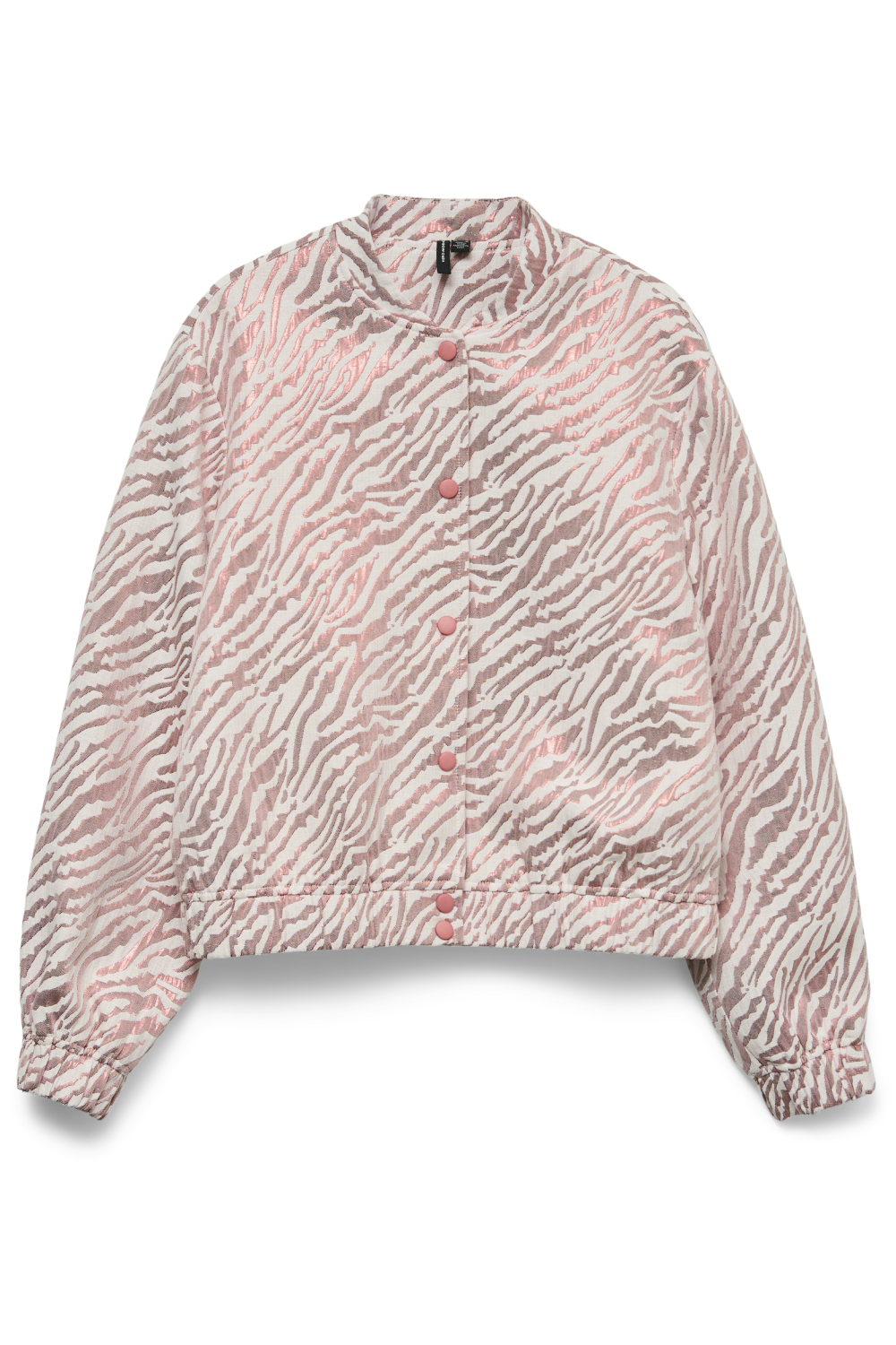 Deze casual damesjas van Vero Moda is een ideale keuze voor het lenteseizoen. Met zijn unieke dierenpatroon in subtiele tinten van roze en beige voeg je een speelse touch toe aan je garderobe. De jas heeft een comfortabele regular fit waardoor hij geschikt is voor diverse lichaamsvormen. De ronde hals en lange mouwen dragen bij aan de eigentijdse uitstraling, terwijl de praktische steekzakken je de ruimte geven om kleine essentials mee te nemen. Gemaakt van 86% polyester en 14% metaalgaren, biedt deze jas een lichte en ademende stof met een elegante glans. De knoopsluiting aan de voorkant zorgt voor een eenvoudige en snelle manier om de jas aan of uit te trekken. Of je nu een casual dag in de stad doorbrengt of een informele bijeenkomst hebt, deze Vero Moda jas is een stijlvolle en veelzijdige keuze die moeiteloos te combineren is met verschillende outfits. Laat deze jas je gezel zijn voor een frisse, modieuze look.