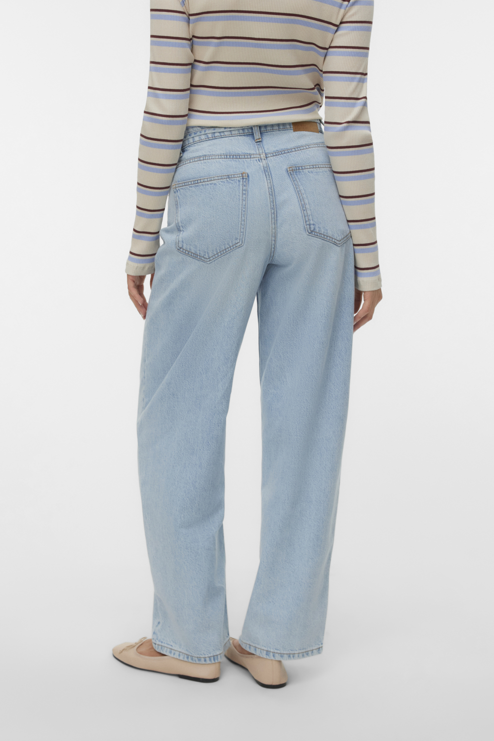 Deze damesjeans van Vero Moda is een perfecte keuze voor het lenteseizoen, met zijn lichte blauwe denim kleur die zorgt voor een frisse en stijlvolle uitstraling. De jeans zijn ontworpen met een comfortabele barrel fit en hebben een high-waist taille, waardoor ze zowel modern als flatterend zijn. Het 5-pocket model biedt voldoende ruimte voor je essentials terwijl de knoop- en ritssluiting zorgt voor een stevige pasvorm. Deze jeans zijn gemaakt van duurzaam geproduceerd 100% katoen, wat niet alleen bijdraagt aan comfort, maar ook aan een bewuste en milieuvriendelijke keuze. Dankzij de tijdloze snit en de neutrale kleur kan je deze Vero Moda jeans eenvoudig combineren met verschillende stijlen. Of je nu kiest voor een casual look met een eenvoudig T-shirt of iets netter met een blouse en blazer, deze jeans bieden de perfecte basis. De normale lengte maakt ze geschikt voor zowel dagelijks gebruik als informele bijeenkomsten. Voeg deze veelzijdige jeans toe aan je garderobe voor een slimme en stijlvolle aanvulling die je moeiteloos kunt mixen en matchen.