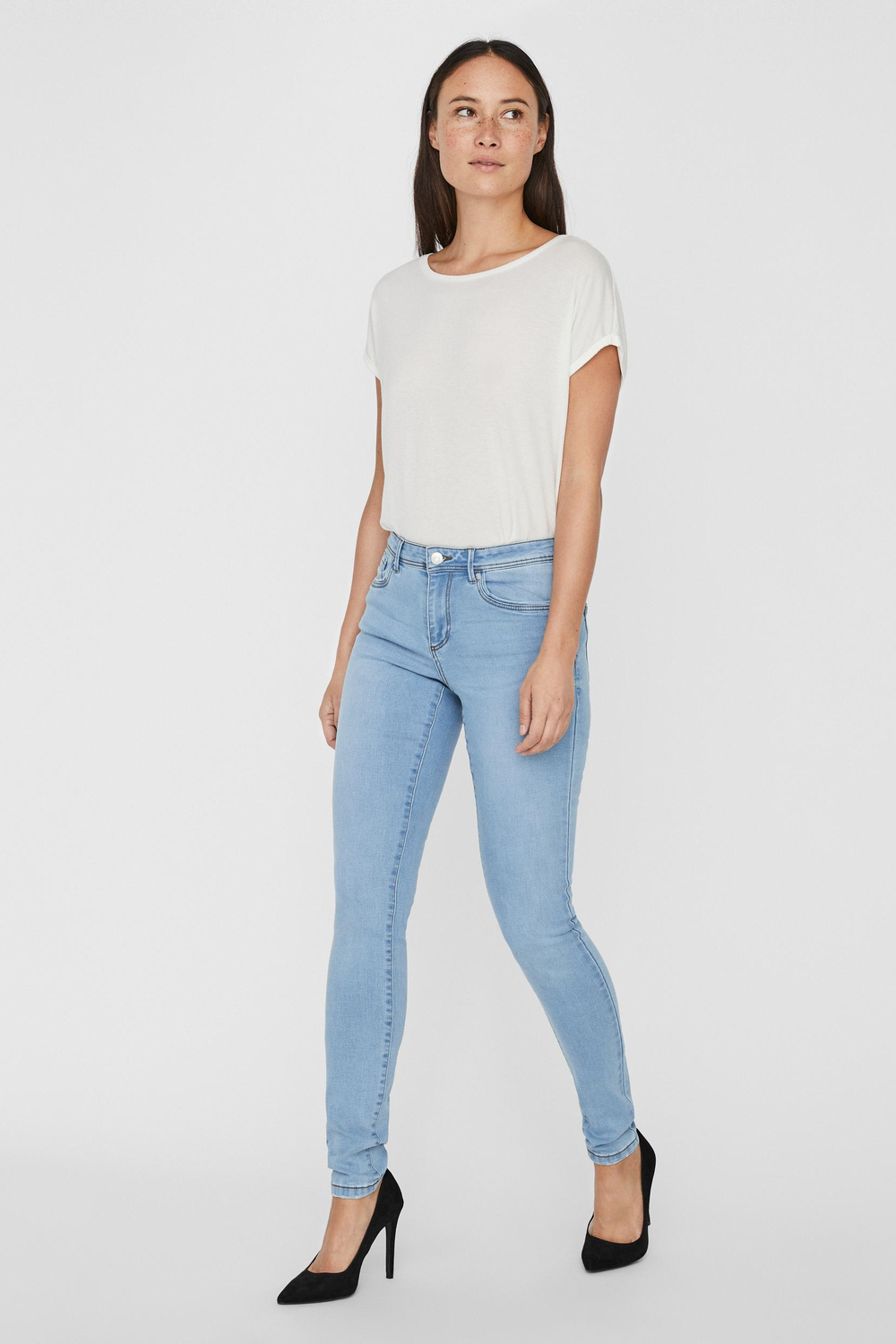 Deze stijlvolle light blue denim jeans voor dames van Vero Moda combineert comfort met een moderne look. Met een slim fit pasvorm en een stonewash afwerking, is deze jeans perfect voor dagelijkse outfits of een avondje uit. De regular waist biedt een comfortabele pasvorm, terwijl de traditionele 5-pocket stijl zorgt voor een praktische en klassieke uitstraling. De subtiele stiksels en de duurzame kwaliteit maken deze jeans een betrouwbare keuze voor het voorjaar. De jeans sluit perfect aan dankzij de knoop- en ritssluiting en de normale lengte. Dit veelzijdige stuk kan moeiteloos worden gecombineerd met een casual t-shirt of een nette blouse, afhankelijk van je plannen. Of je nu op kantoor bent, een relaxte dag hebt, of een weekenduitje plant, deze Vero Moda jeans past bij elke gelegenheid. Voeg een speelse touch toe aan je garderobe met deze tijdloze denim stijl.