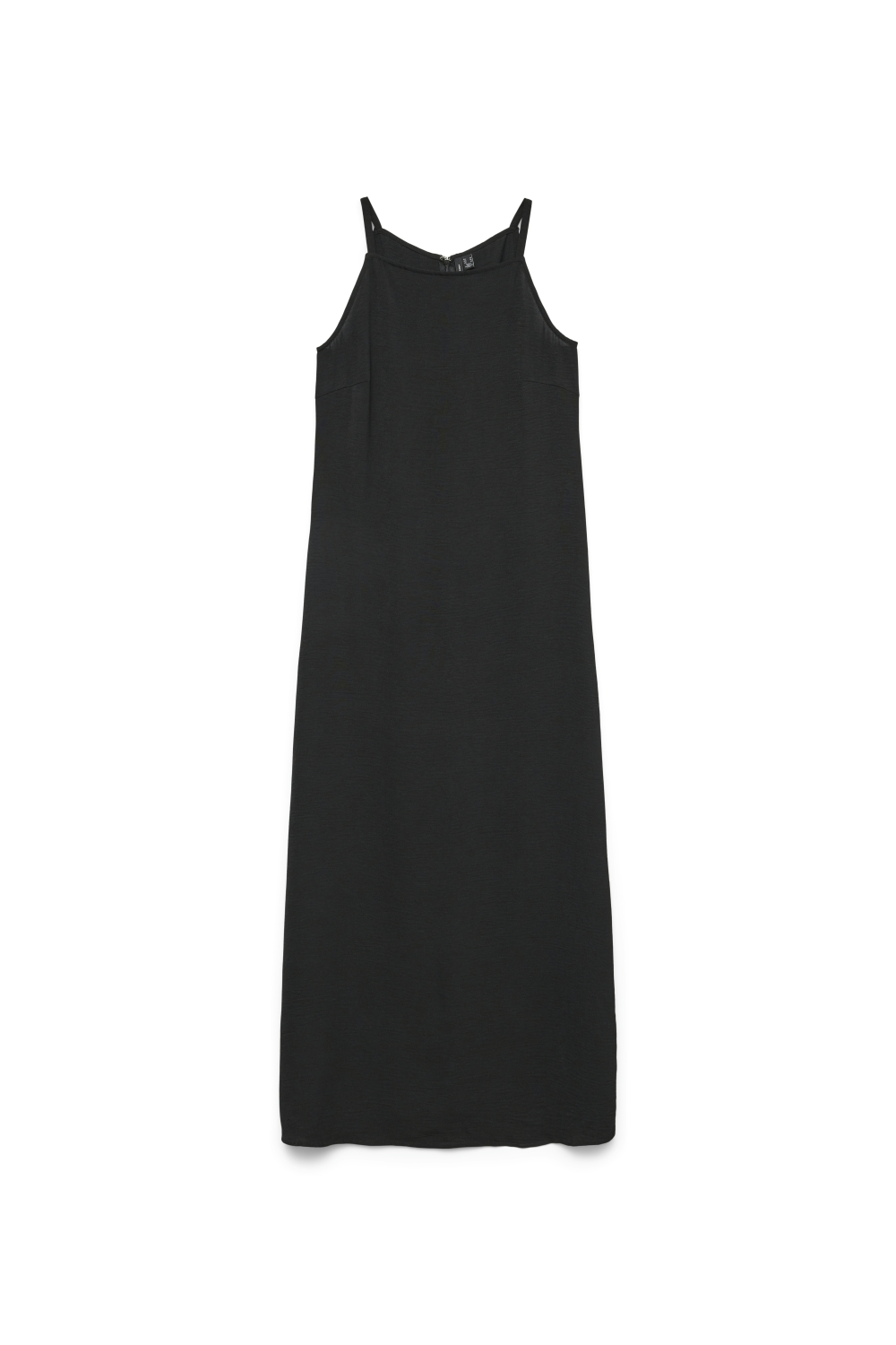 Met deze stijlvolle zwarte jurk van Vero Moda voeg je een tijdloze klassieker toe aan je zomergarderobe. De jurk heeft een elegant ontwerp met een eenvoudige, vierkante halslijn en delicate spaghettibandjes, wat zorgt voor een luchtige en verfijnde look. Gemaakt van 100% gerecycled polyester, voelt de stof zacht aan op je huid en biedt het je comfort op warme dagen. Dankzij de regular fit sluit deze jurk prachtig aan zonder in te boeten op bewegingsvrijheid, ideaal voor dagelijks gebruik.