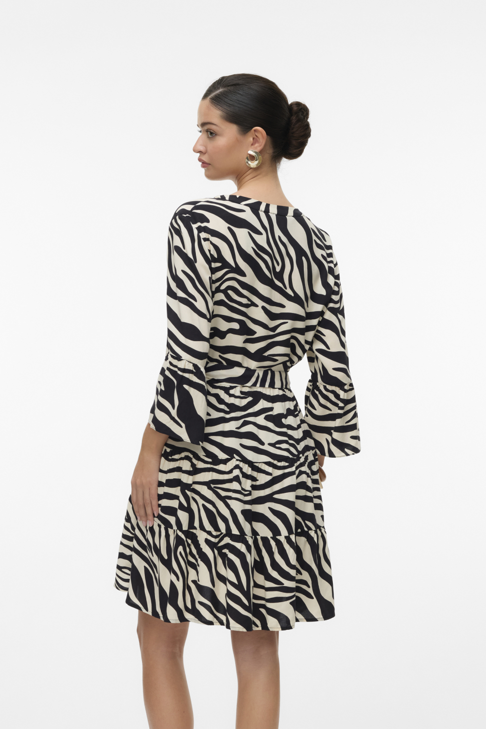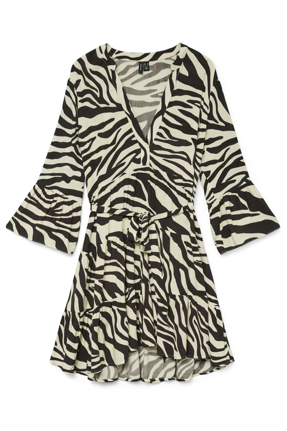 Deze casual jurk van Vero Moda is een veelzijdige keuze voor je lente-garderobe. Het grafische patroon in zwart-wit geeft een moderne look, terwijl de V-hals en de blinde knoopsluiting zorgen voor een subtiele elegantie. De korte lengte en de 3/4 mouwen maken deze jurk ideaal voor verschillende gelegenheden, van een ontspannen dagje uit tot een informele bijeenkomst. Met een regular pasvorm biedt de jurk voldoende bewegingsvrijheid en comfort. Gemaakt van 100% viscose voelt deze jurk licht en luchtig aan op de huid. De bijpassende ceintuur accentueert de taille en geeft de jurk een vrouwelijke uitstraling. Combineer deze Vero Moda jurk met eenvoudige accessoires voor een stijlvolle, dagelijkse look. Of je nu een middag in de stad doorbrengt of een casual evenement bijwoont, deze jurk is een veelzijdige keuze die je eenvoudig kunt stylen.